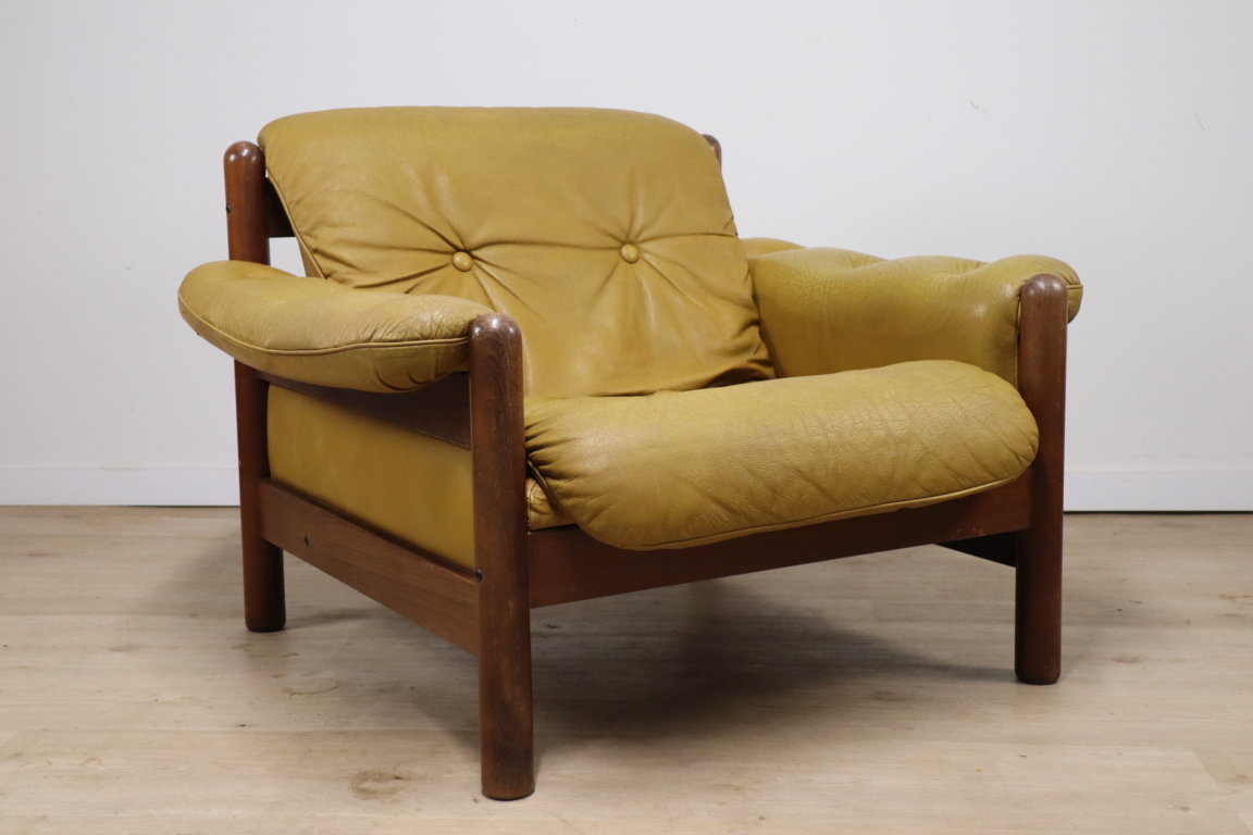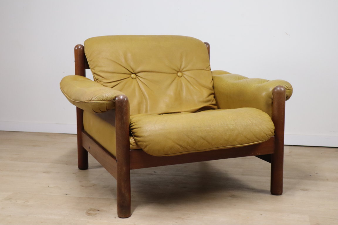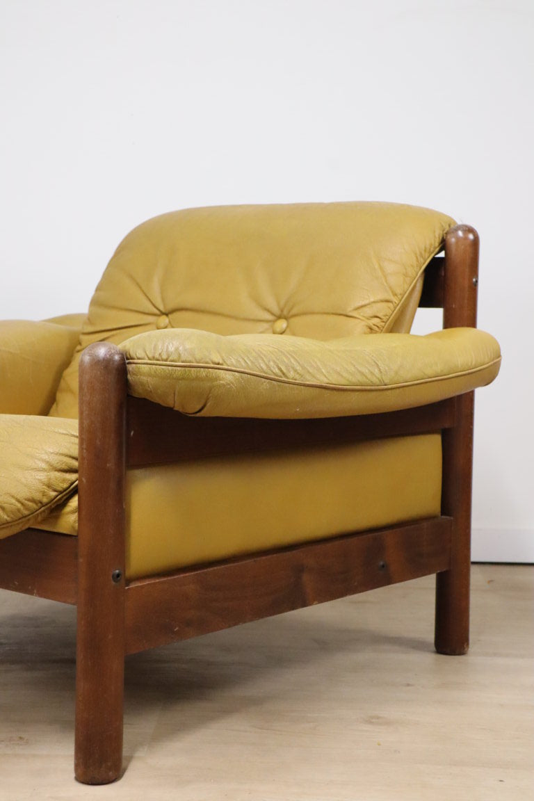 Fauteuil scandinave conçu dans les années 60 sur une structure en hêtre massif.