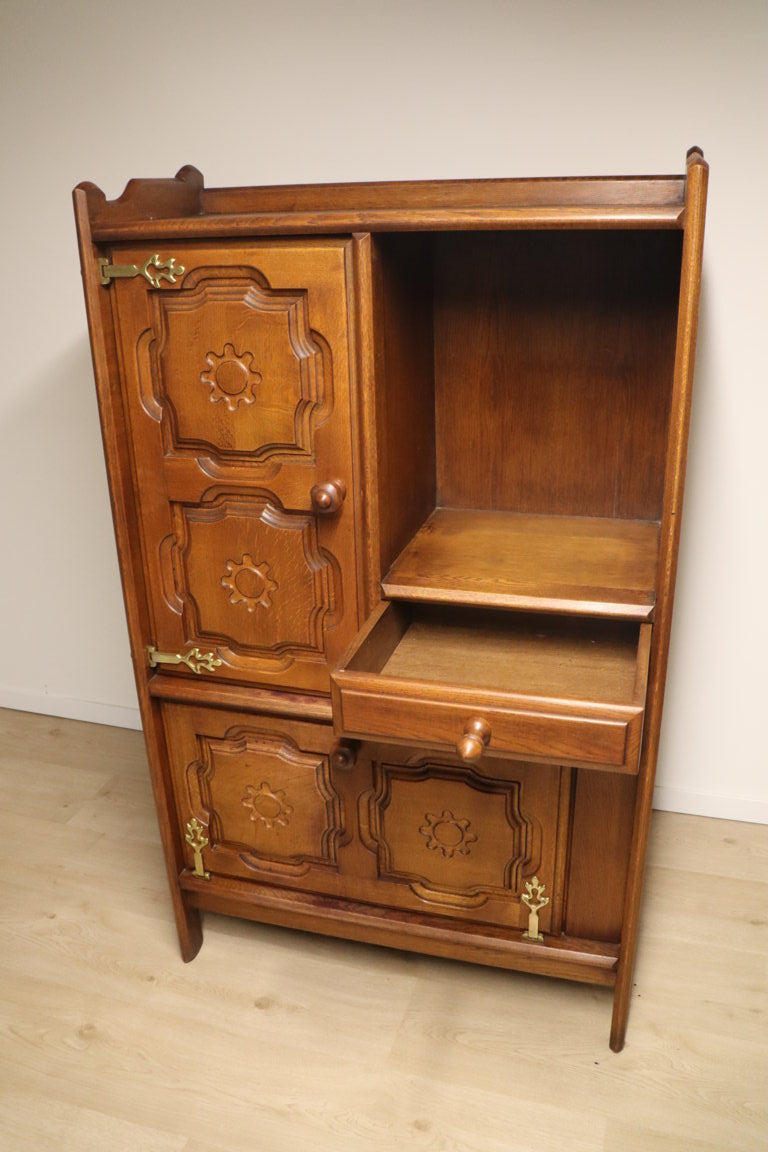 Elle est conçue en chêne massif. Très beau travail avec de nombreux rangements.