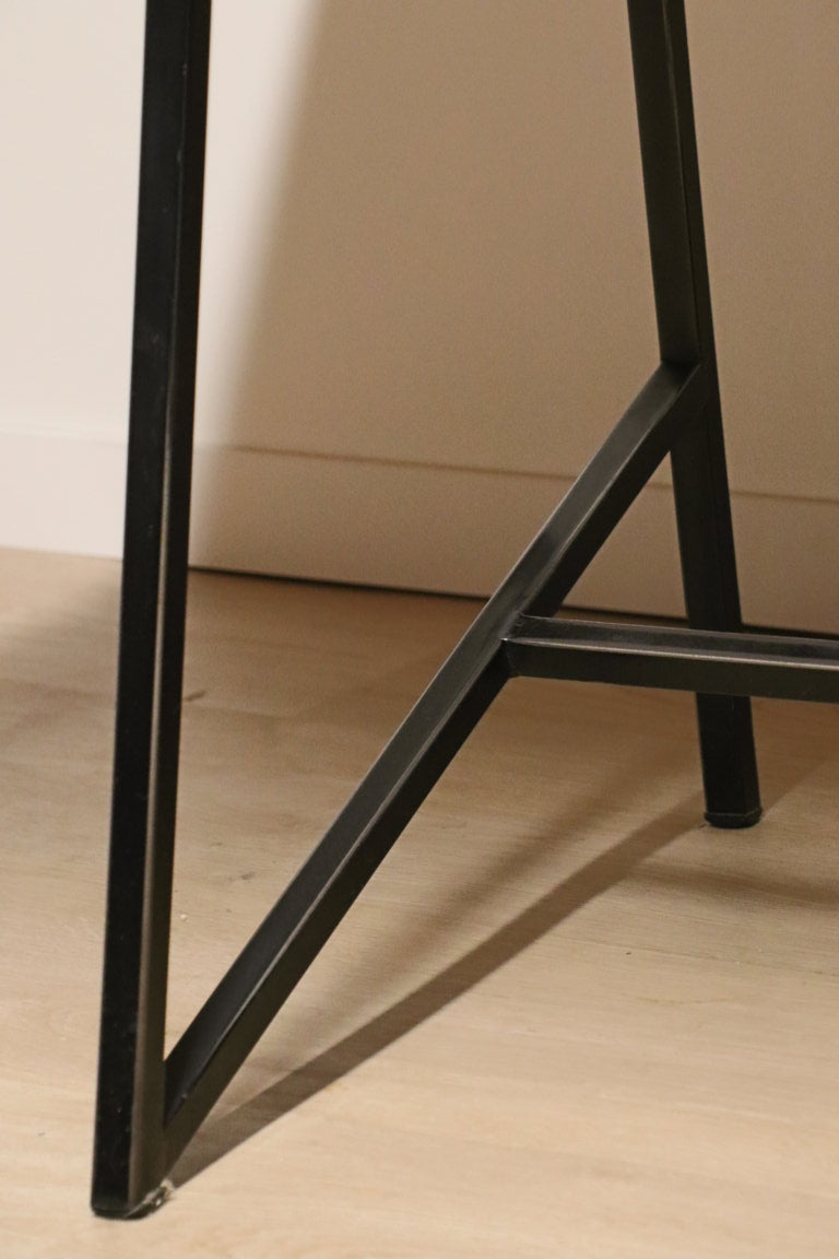 Réalisé en bois de placage d'acajou et un piètement asymétrique en métal laqué noir.