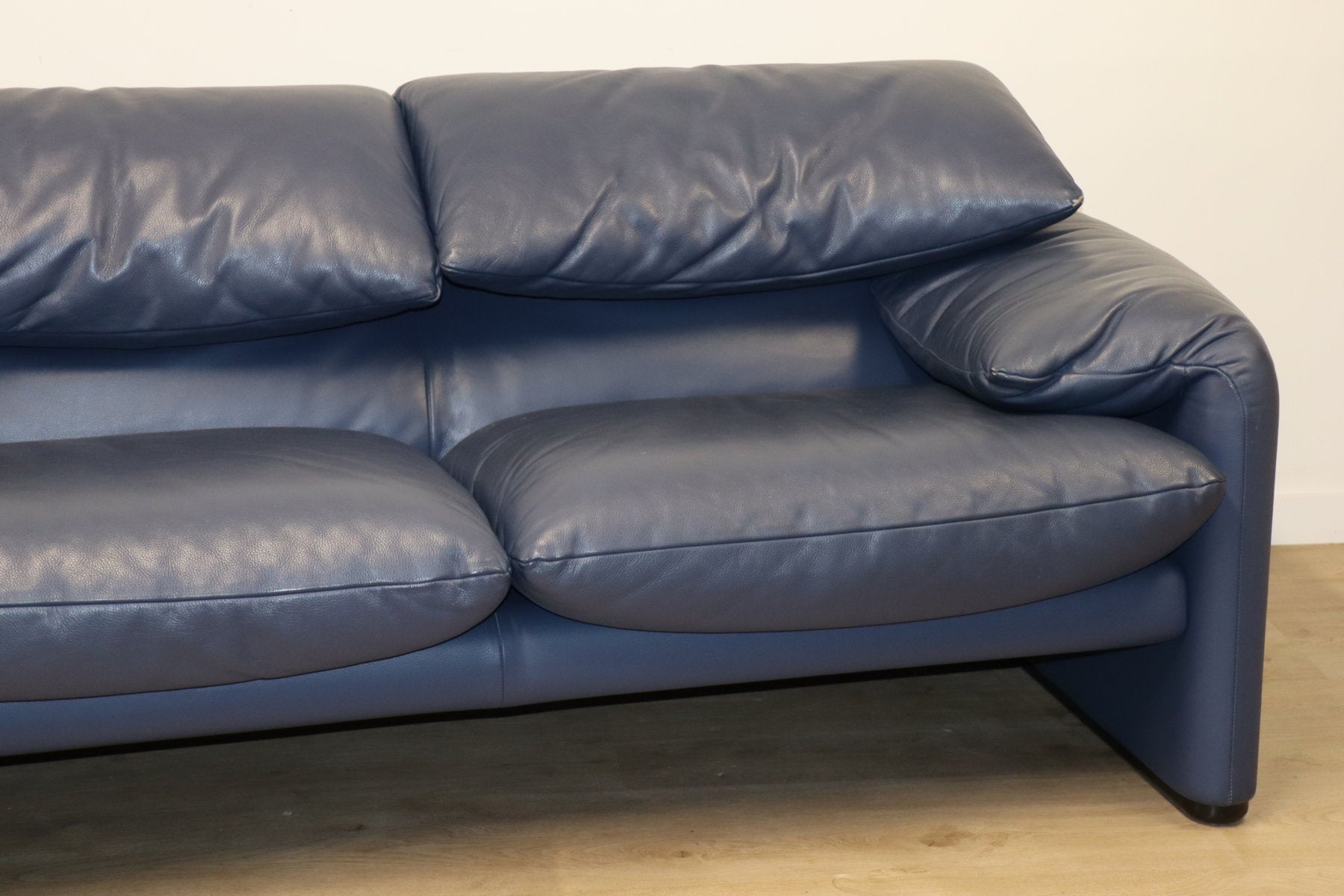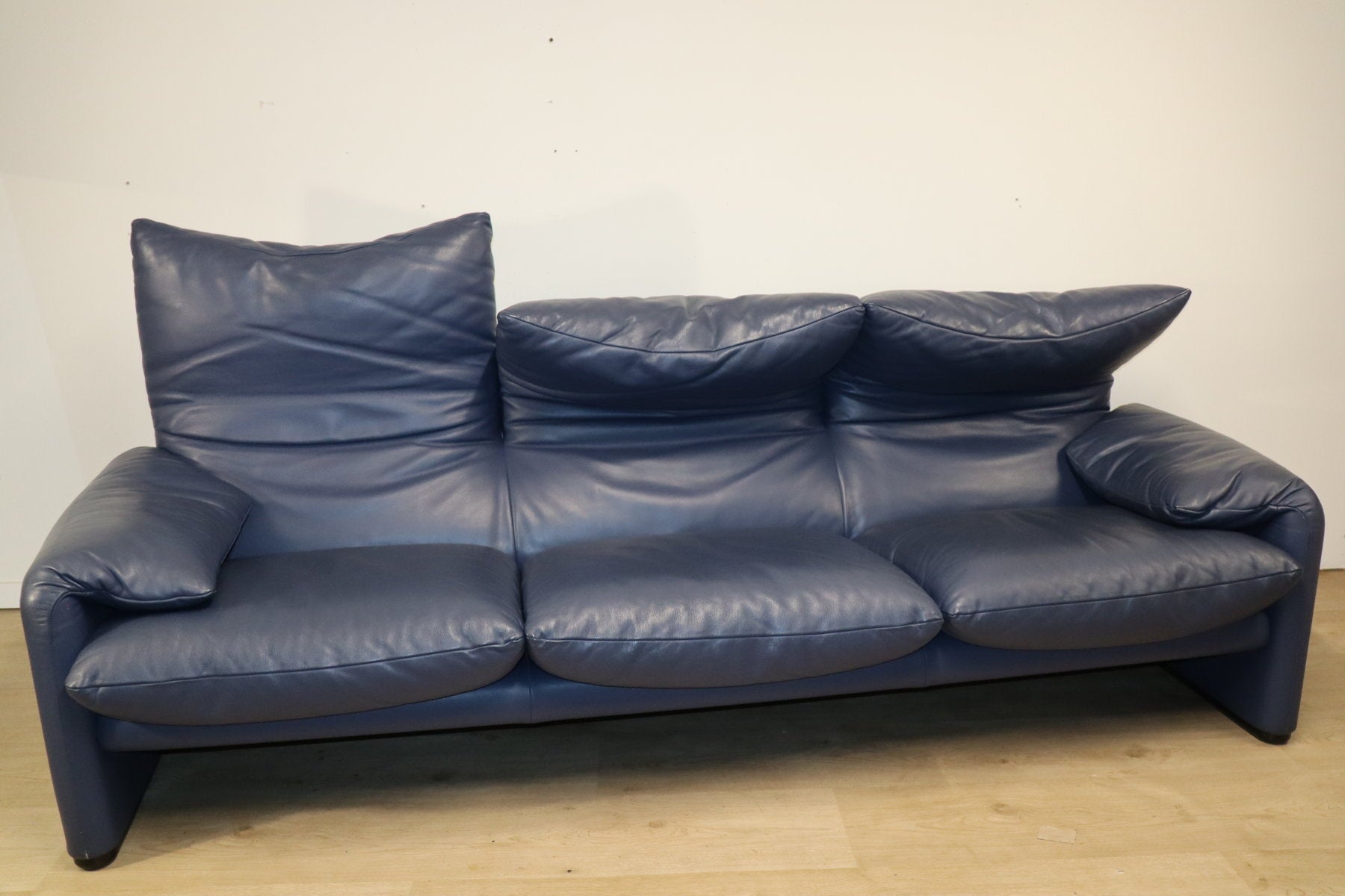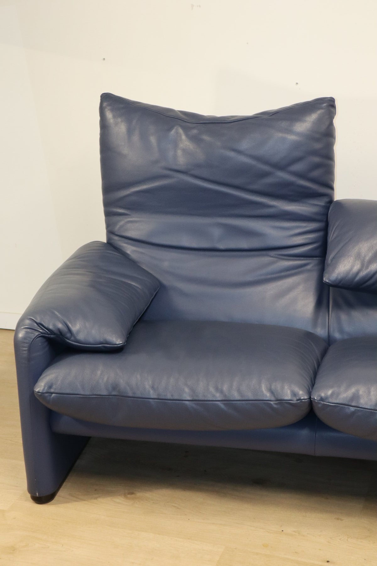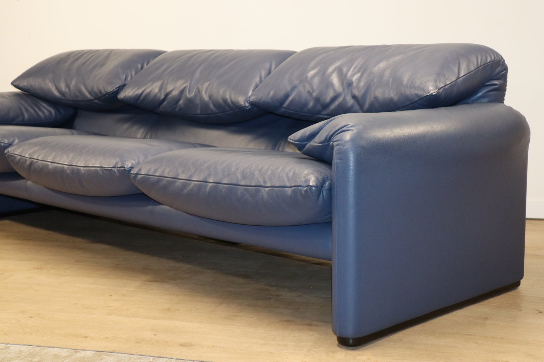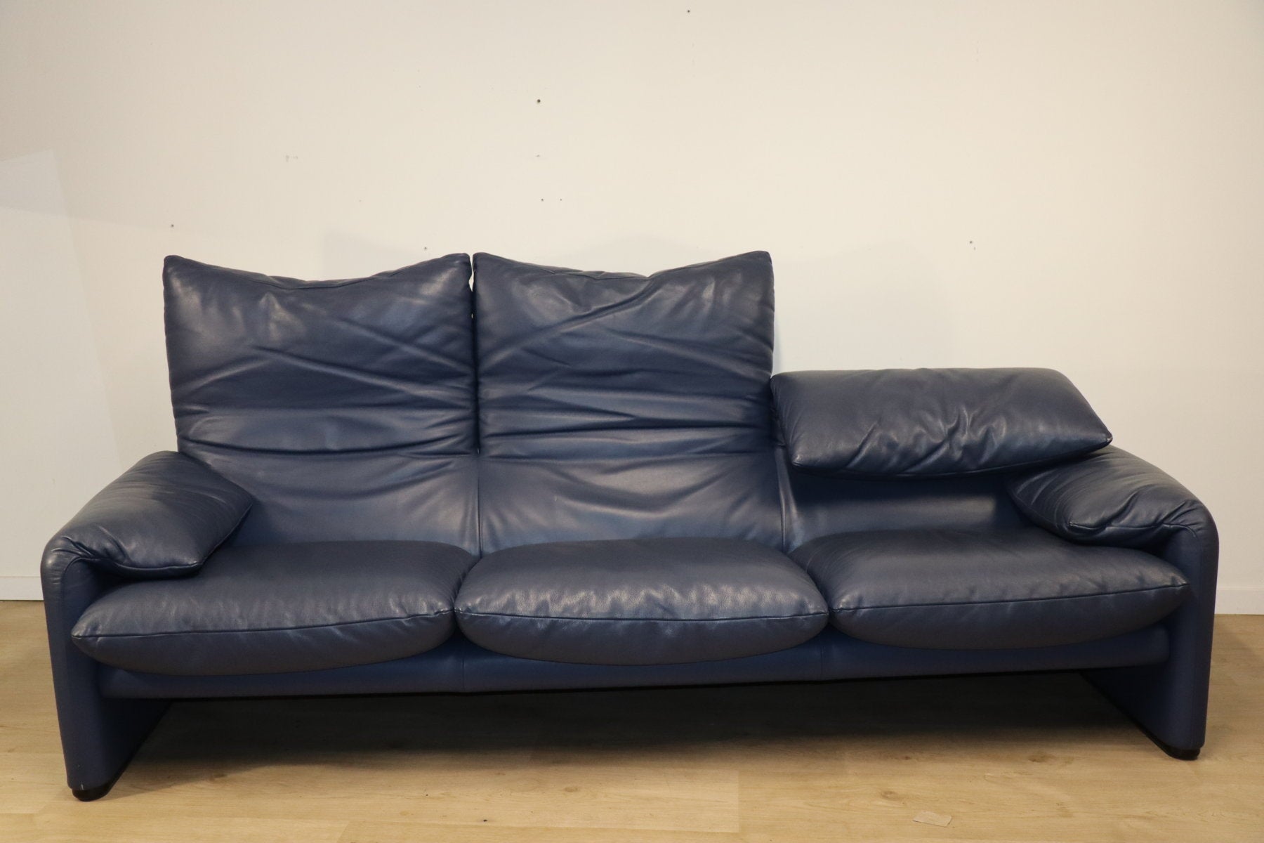 Revêtu d’un cuir bleu profond, il affiche une allure à la fois élégante et contemporaine. Ses appuie-têtes ajustables, véritable signature du modèle, permettent de moduler l’assise selon l’envie — détente ou maintien optimal.
