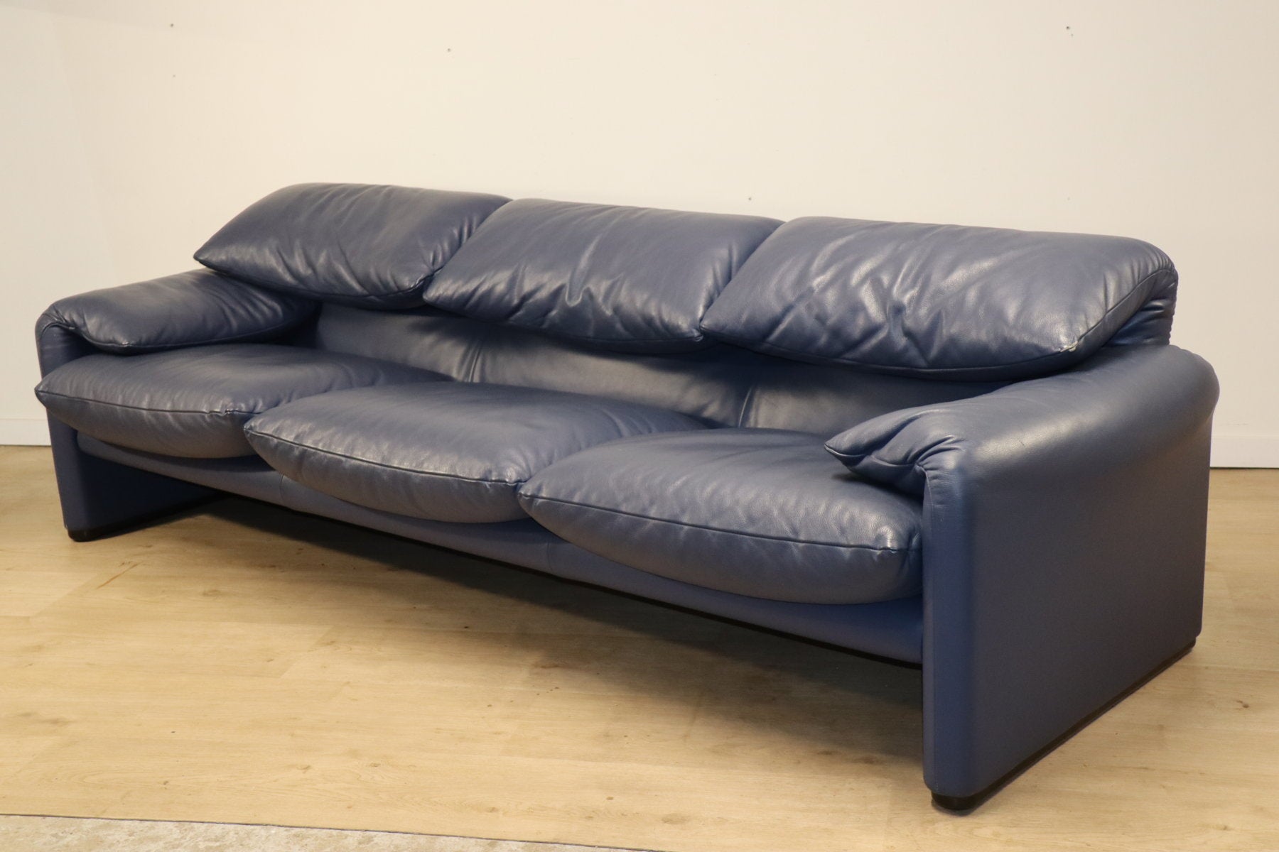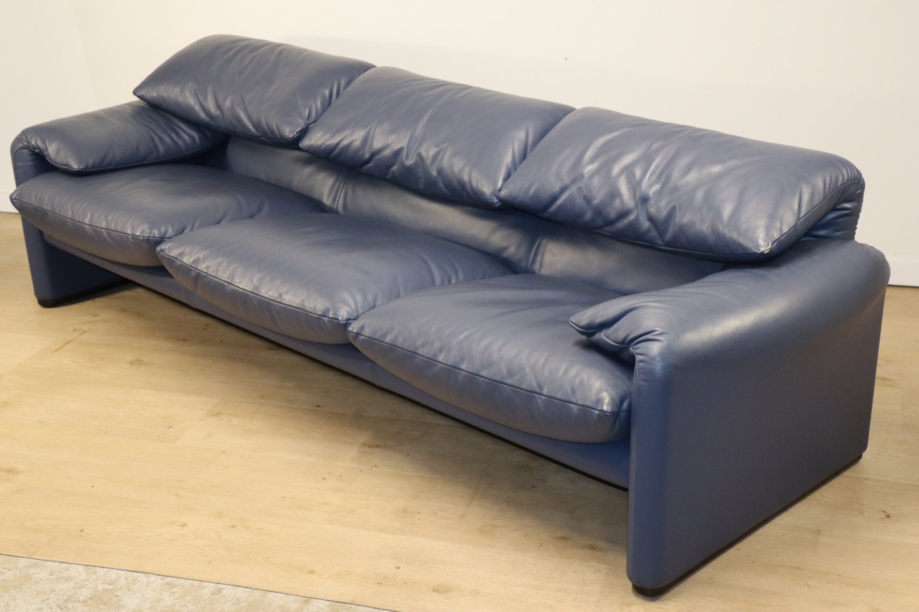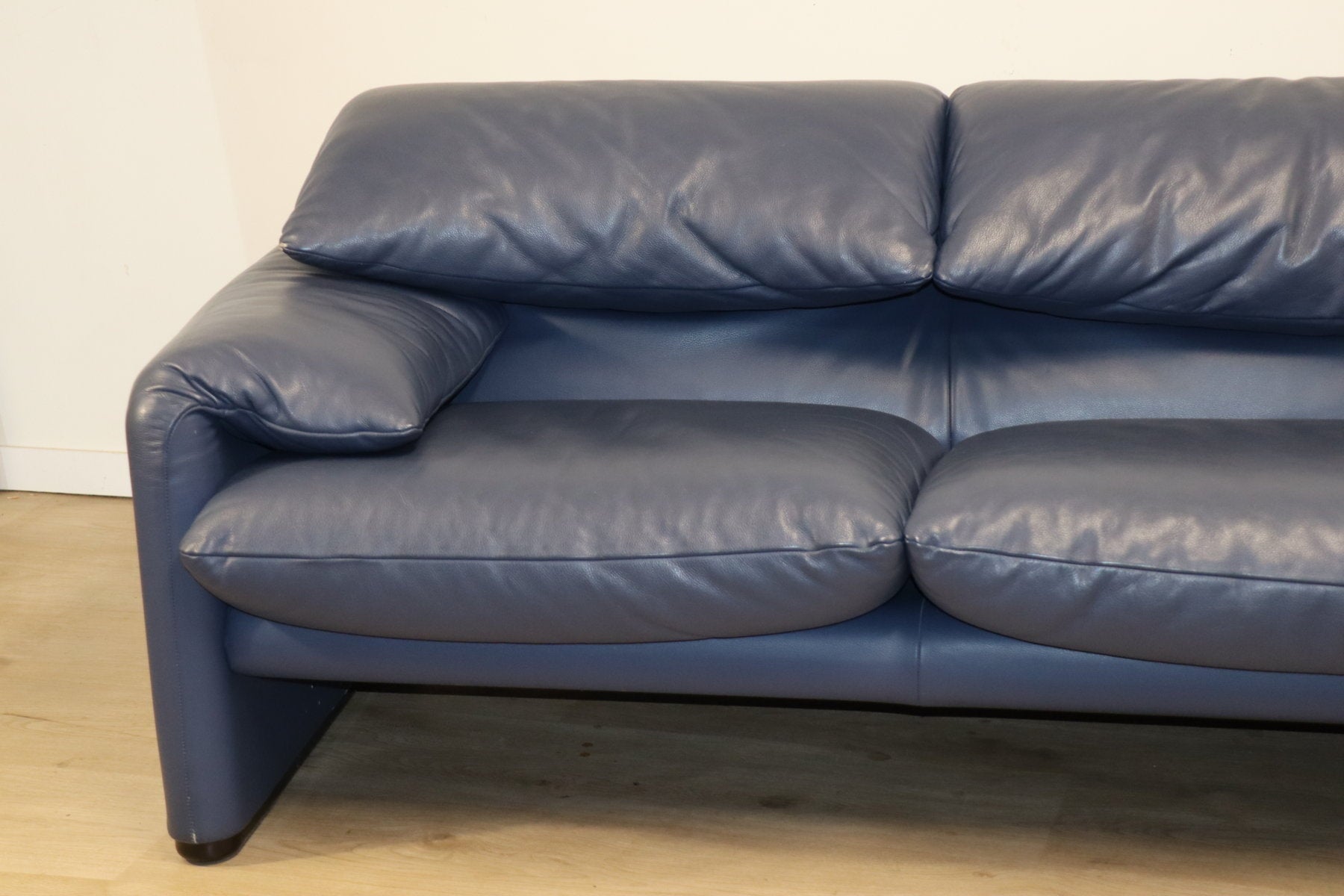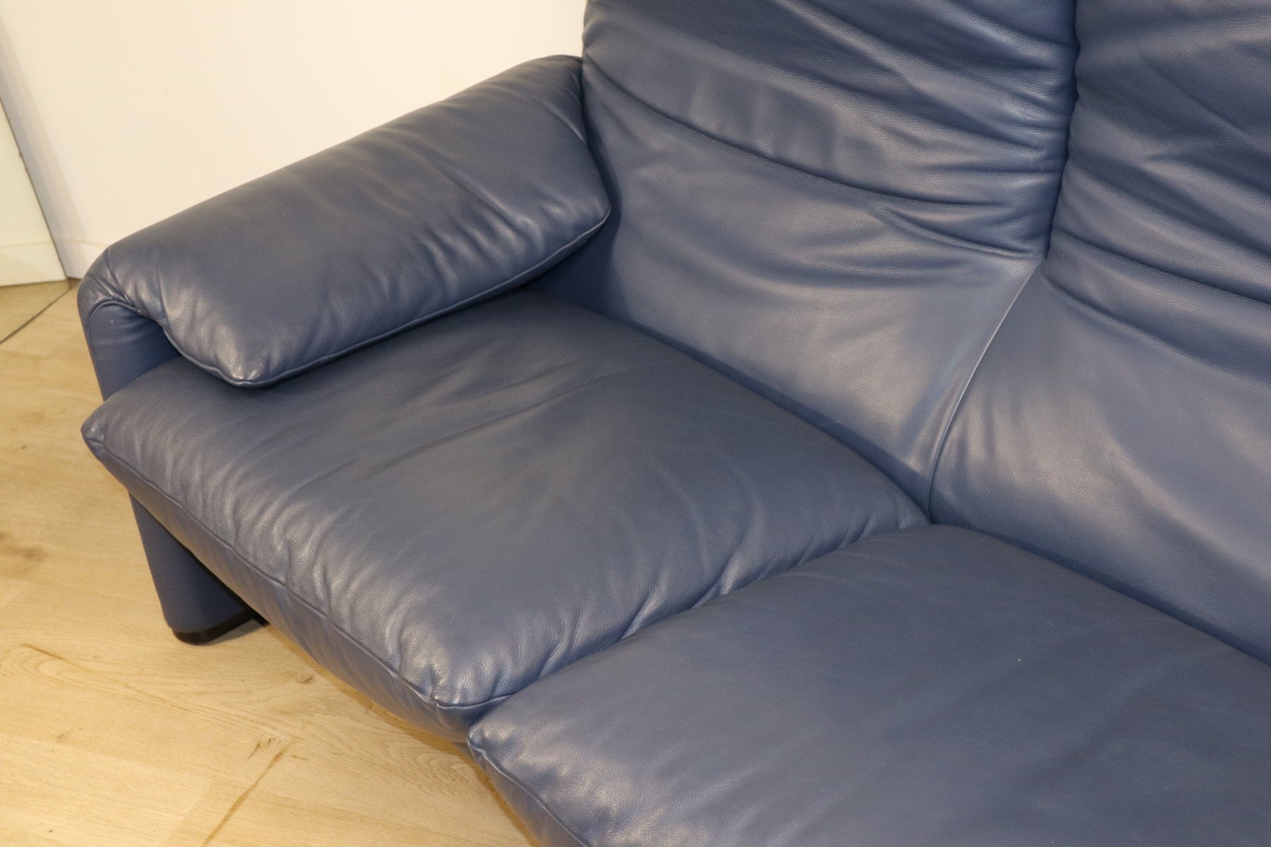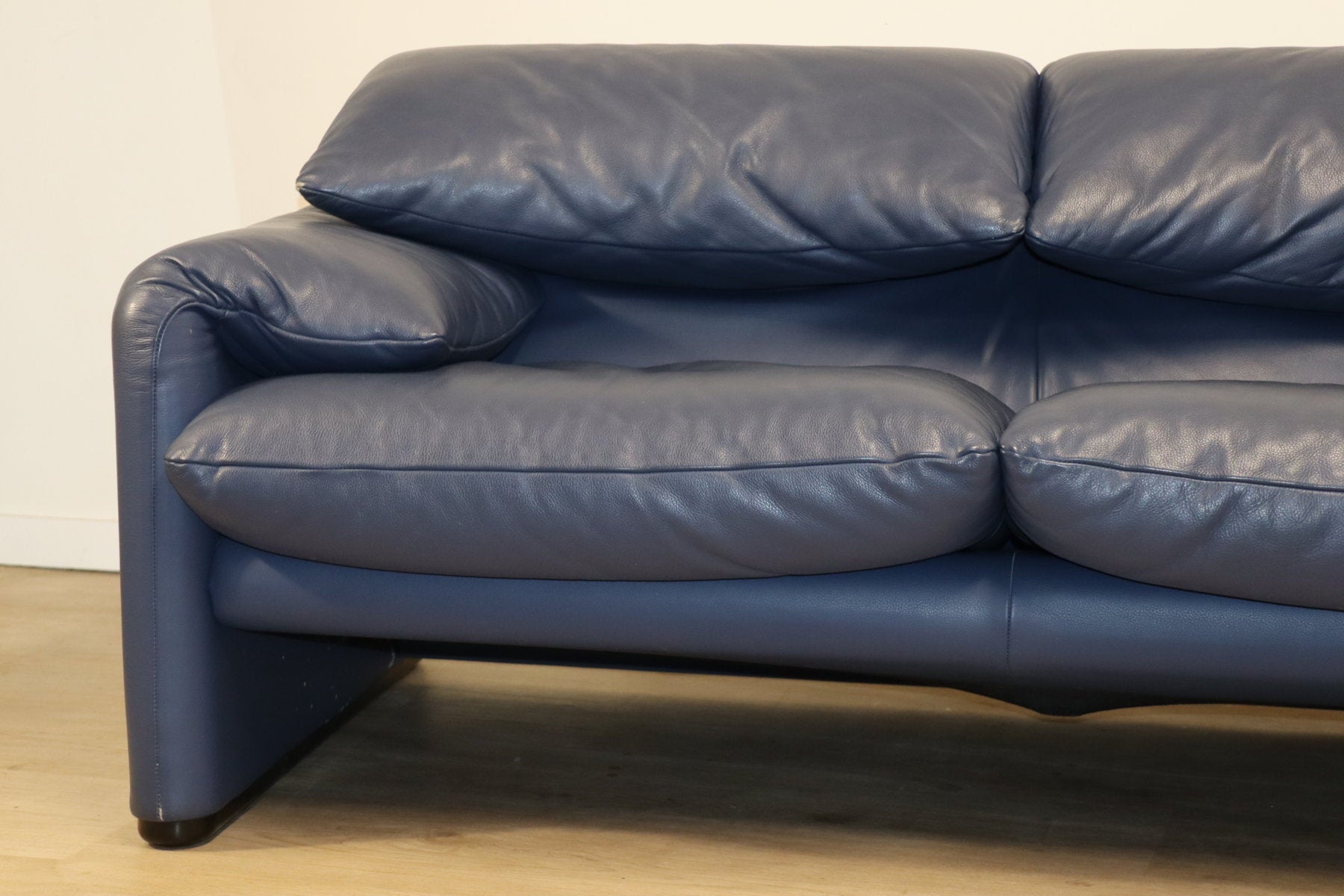 Revêtu d’un cuir bleu profond, il affiche une allure à la fois élégante et contemporaine. Ses appuie-têtes ajustables, véritable signature du modèle, permettent de moduler l’assise selon l’envie — détente ou maintien optimal.