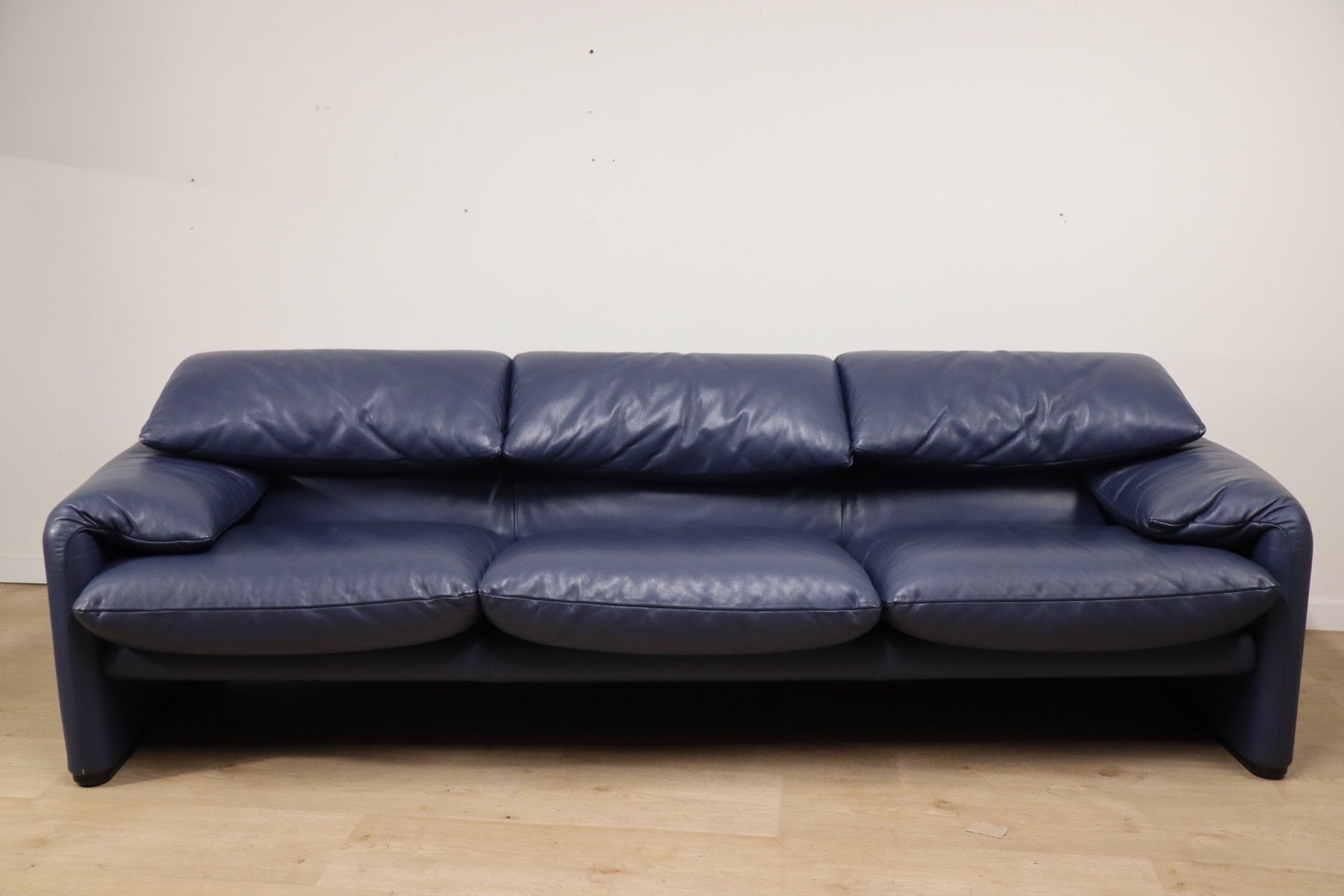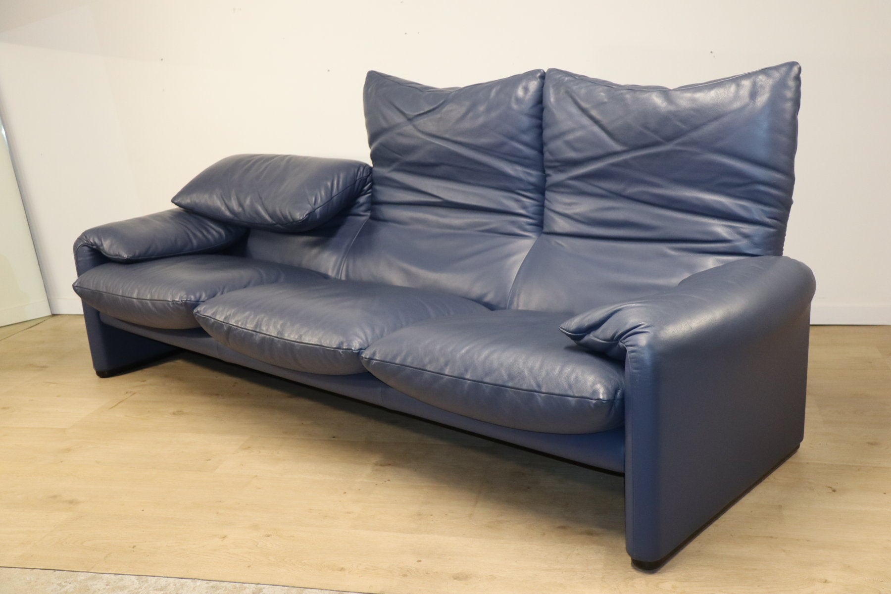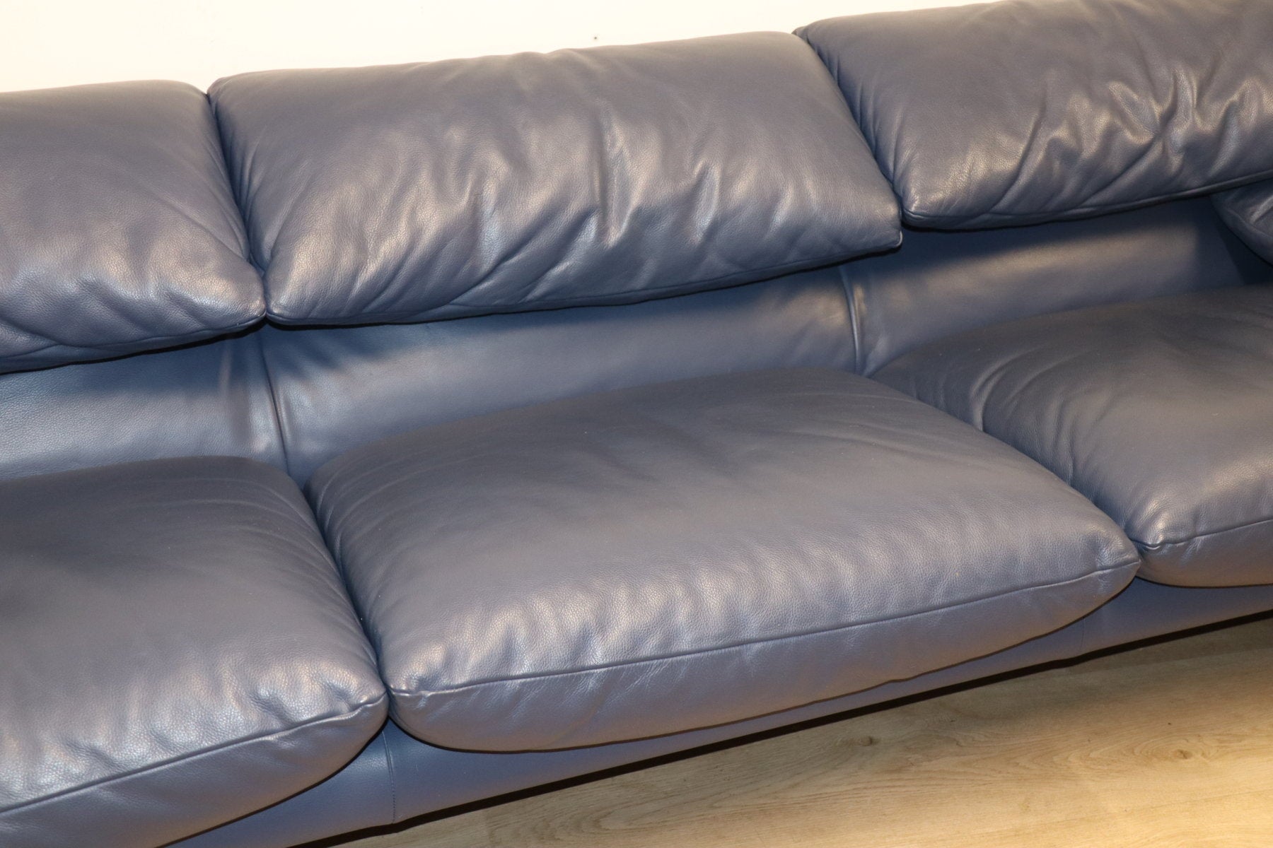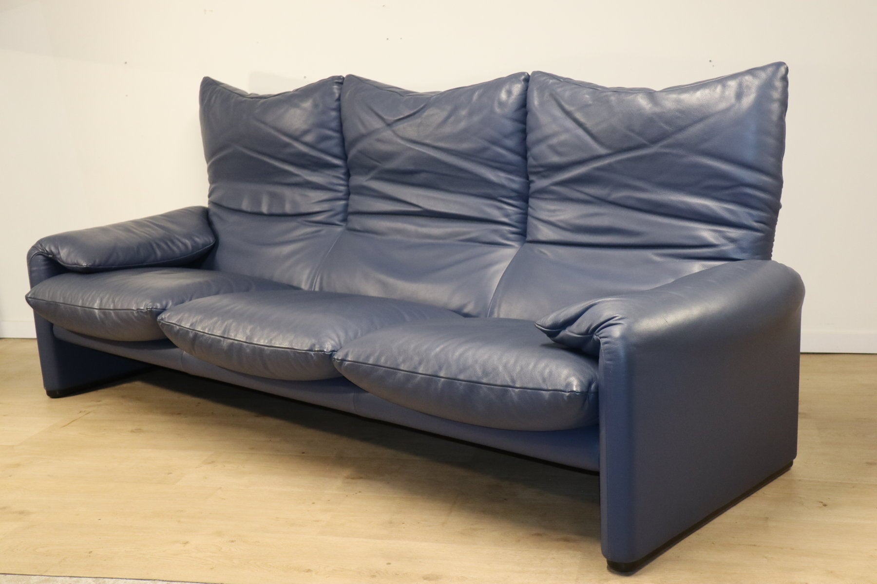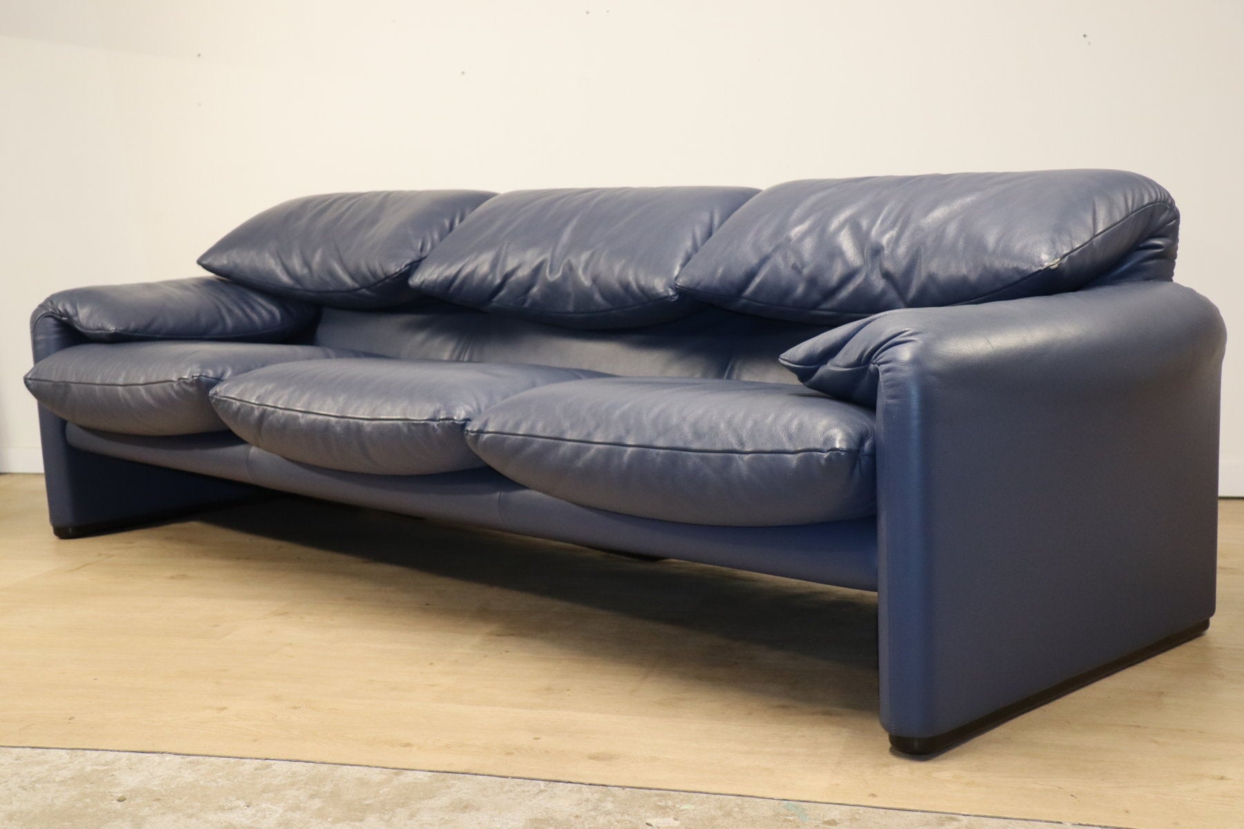 Revêtu d’un cuir bleu profond, il affiche une allure à la fois élégante et contemporaine. Ses appuie-têtes ajustables, véritable signature du modèle, permettent de moduler l’assise selon l’envie — détente ou maintien optimal.