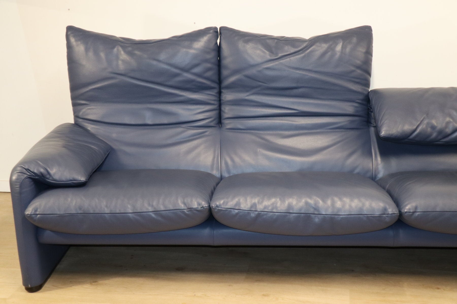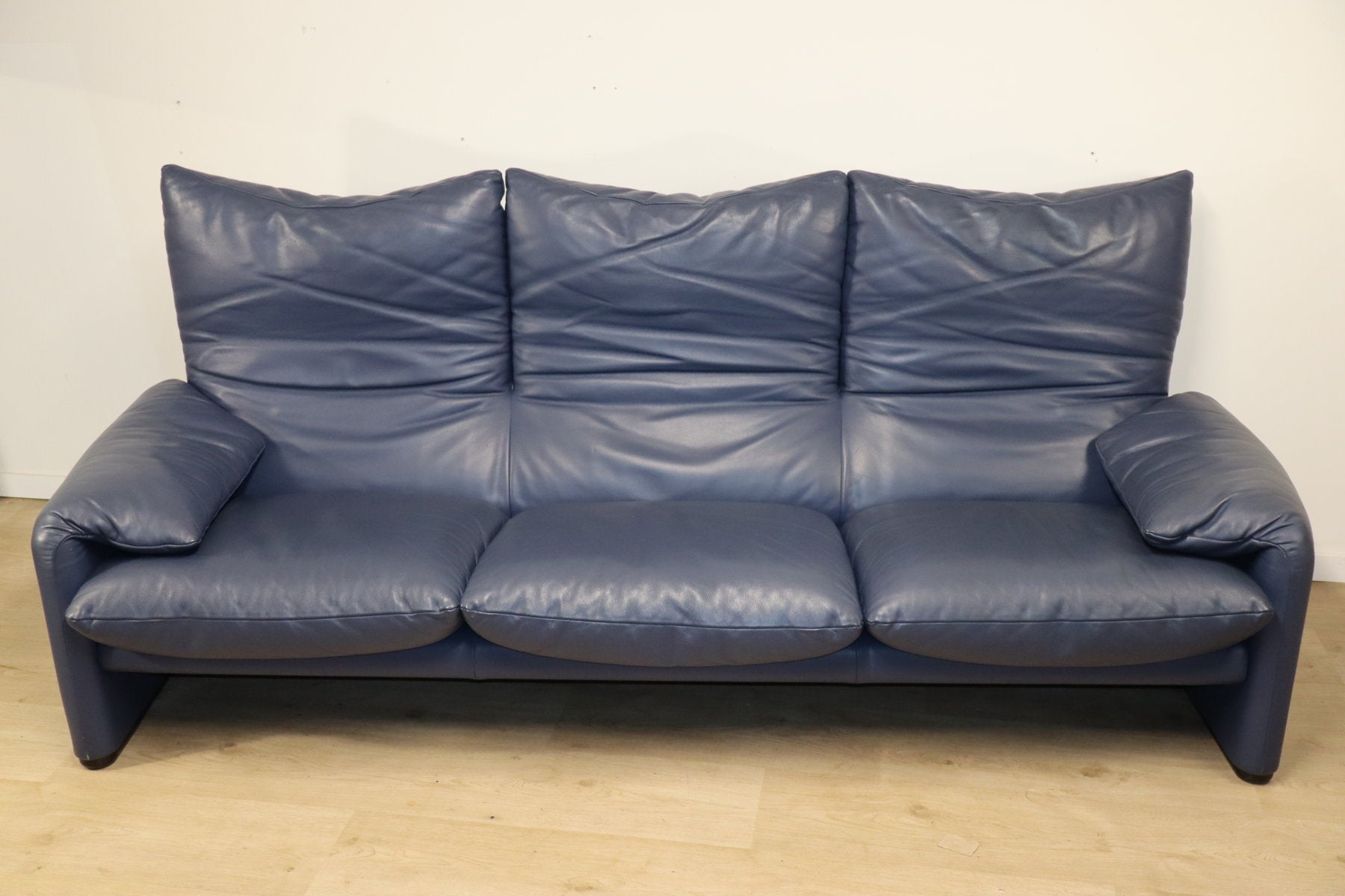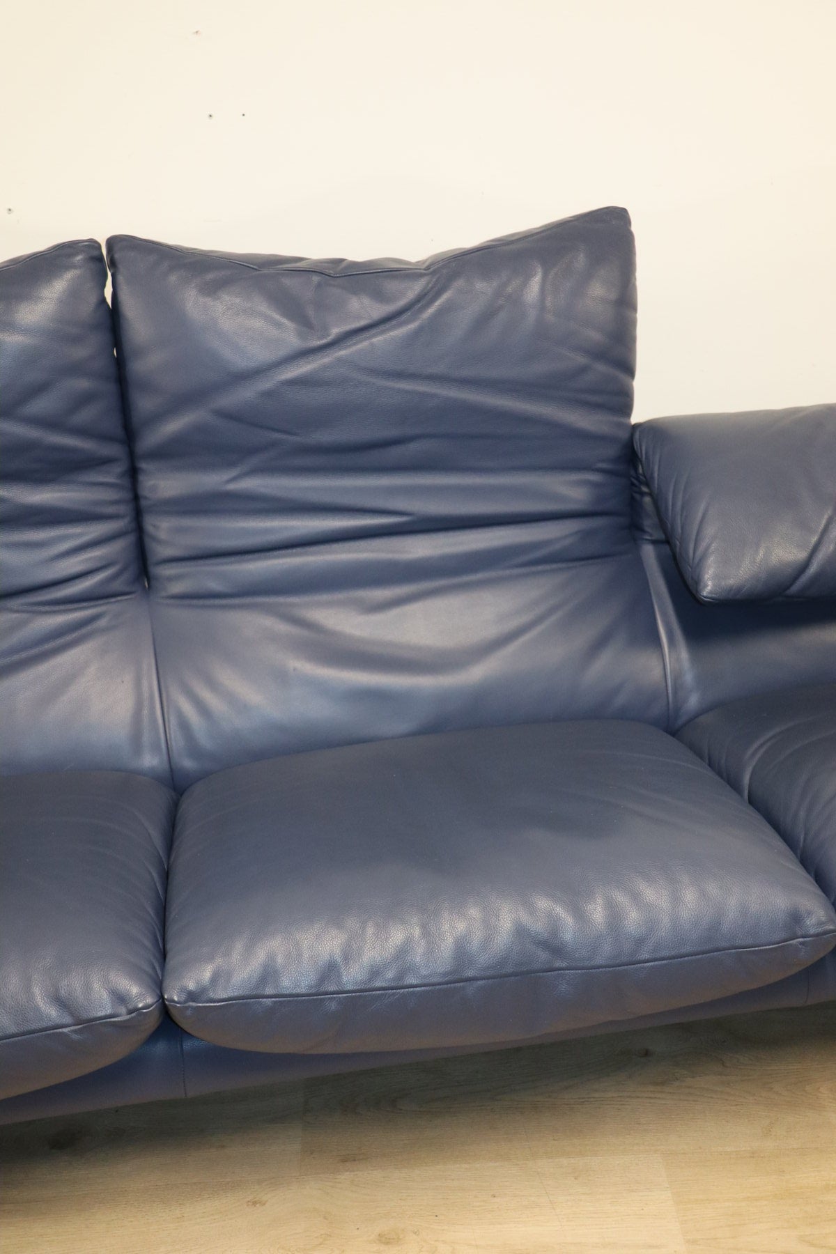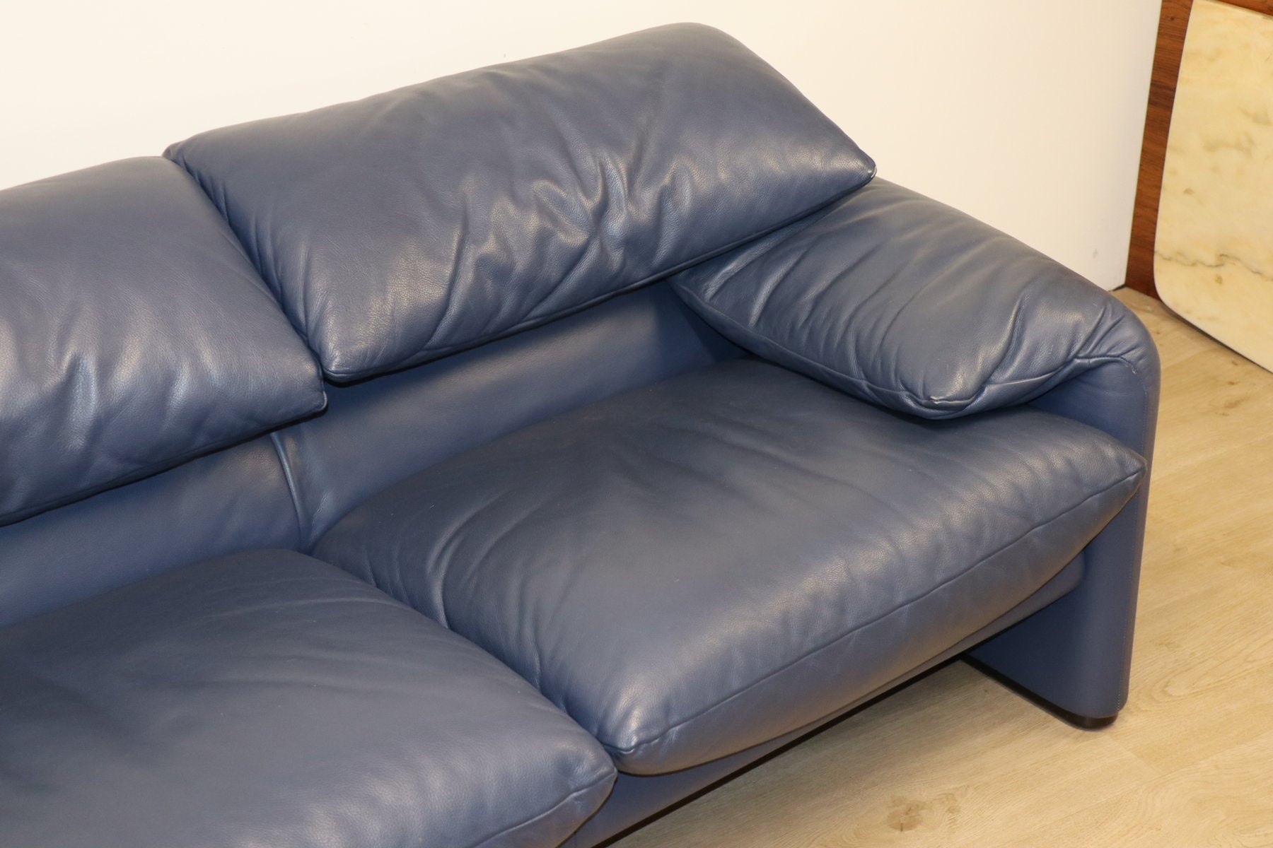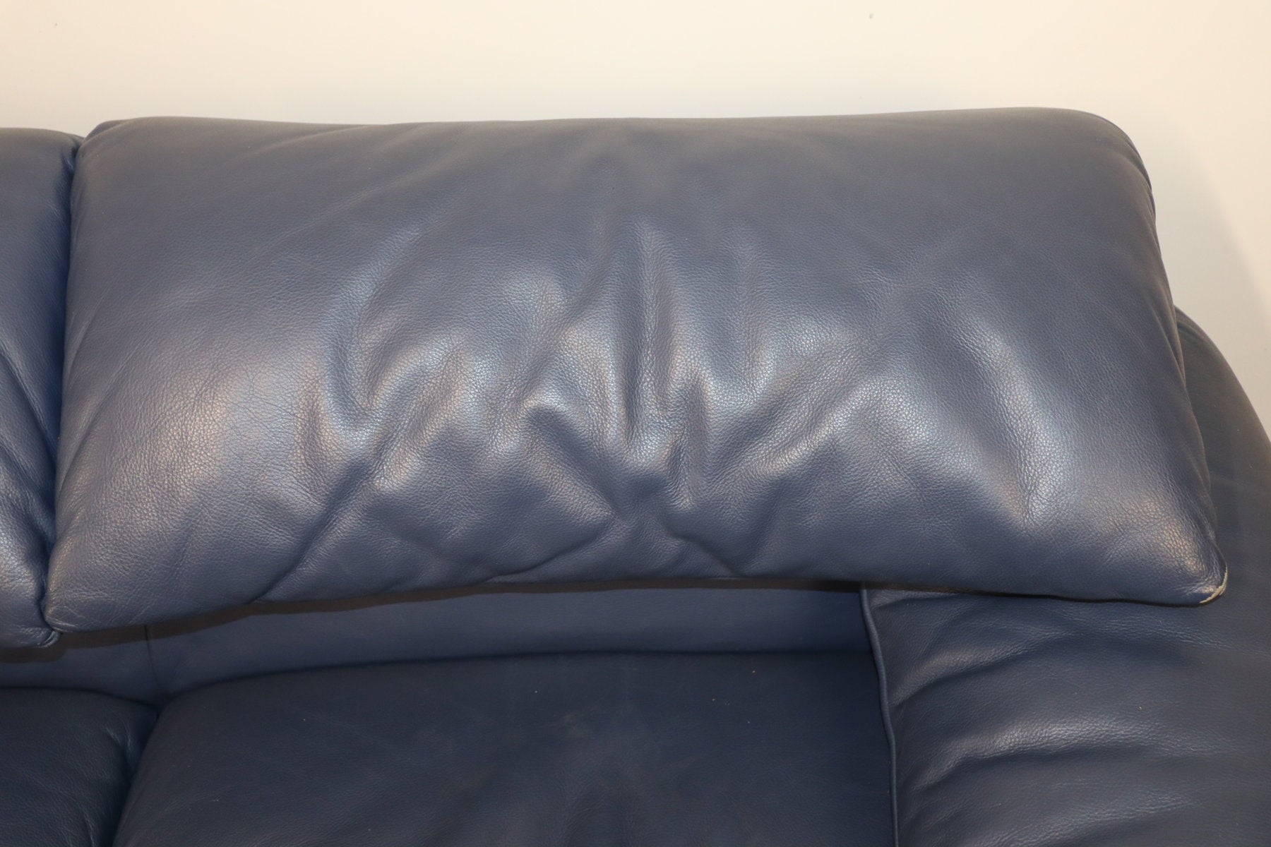 Revêtu d’un cuir bleu profond, il affiche une allure à la fois élégante et contemporaine. Ses appuie-têtes ajustables, véritable signature du modèle, permettent de moduler l’assise selon l’envie — détente ou maintien optimal.