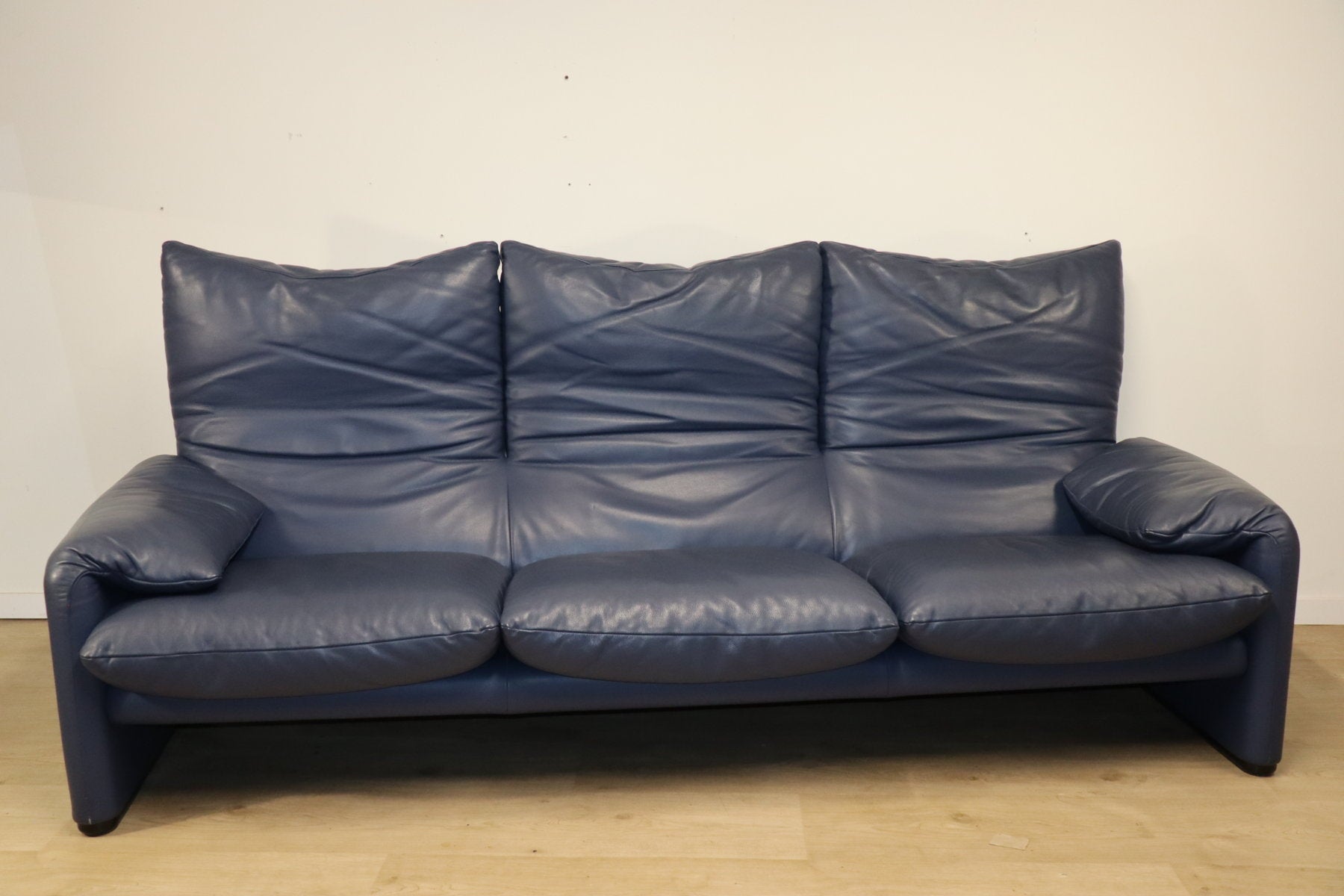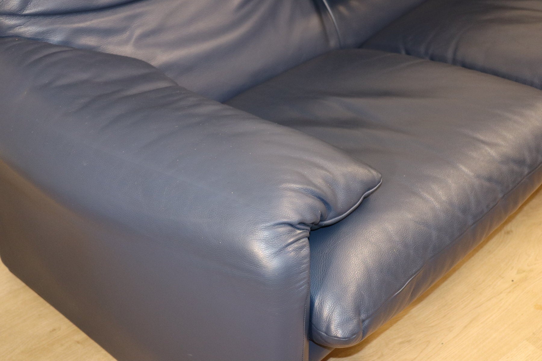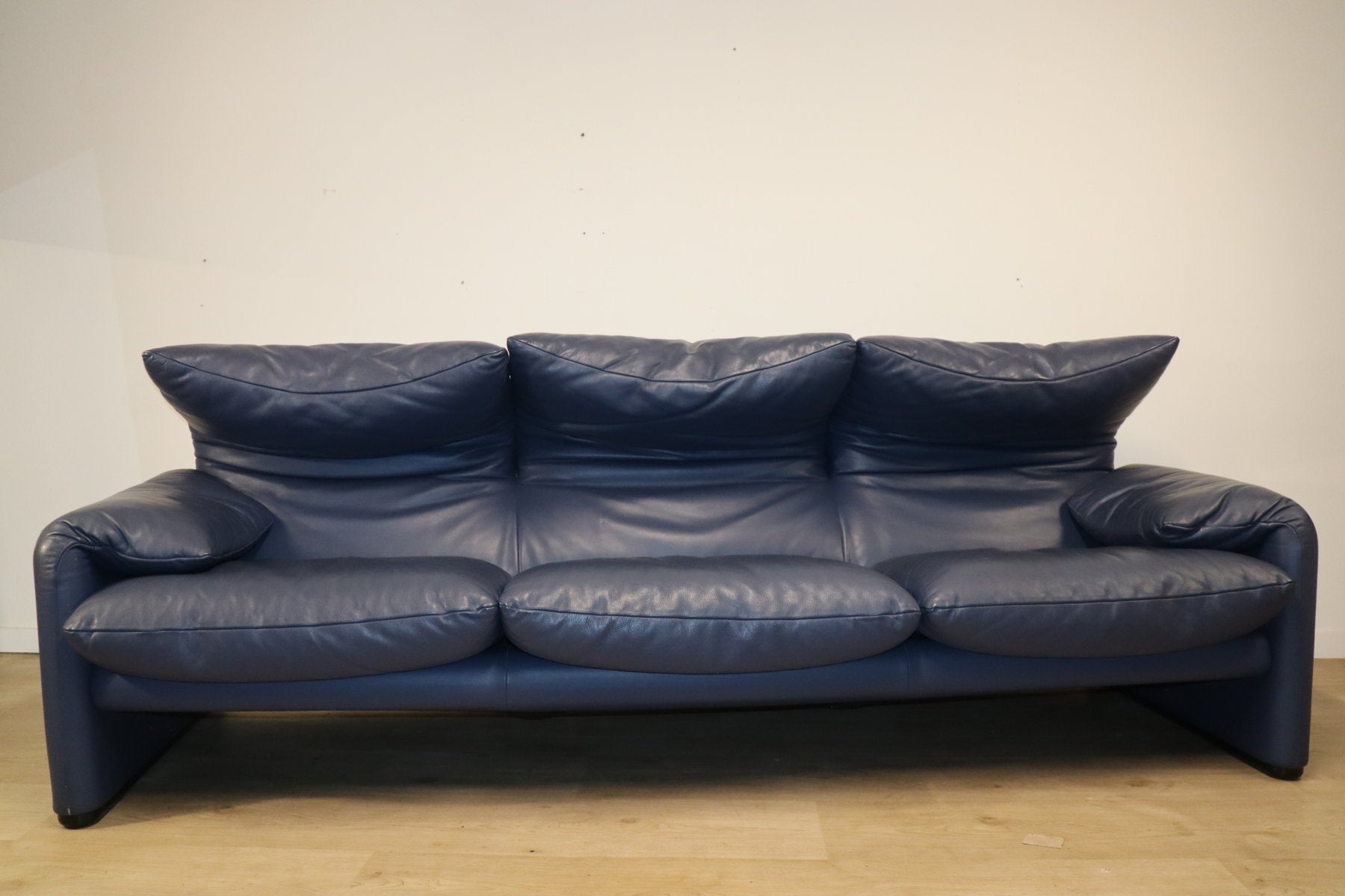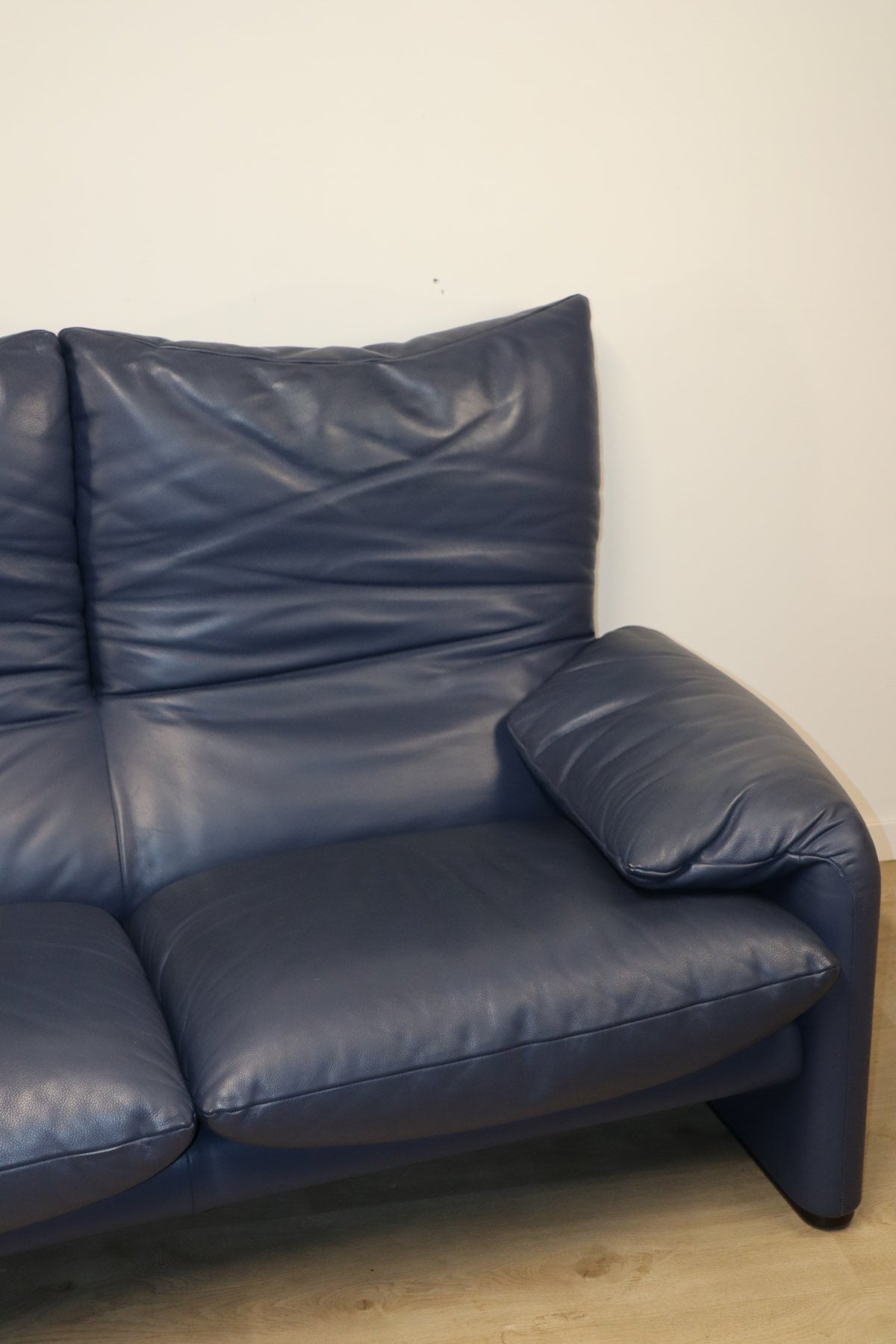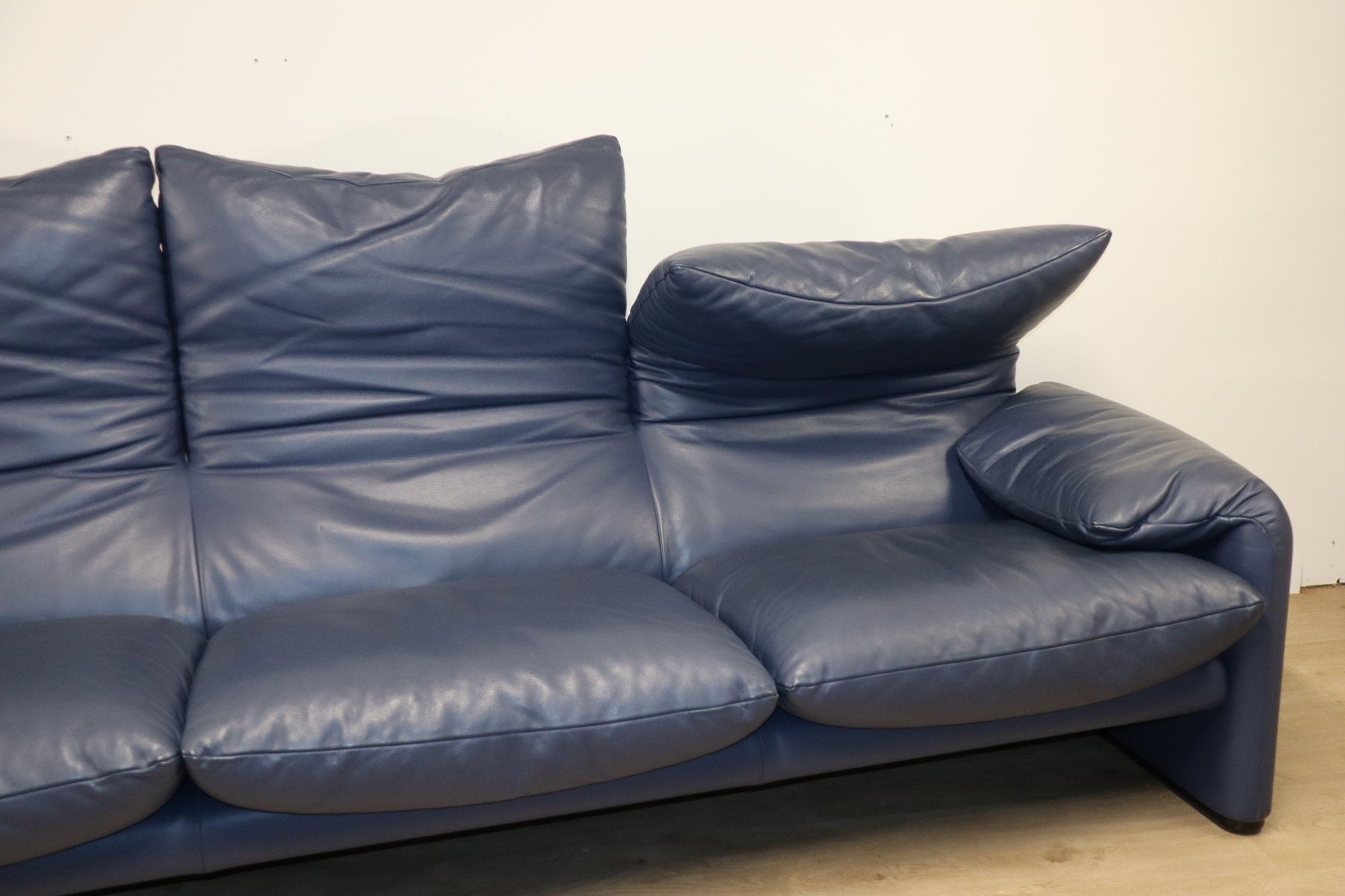 Revêtu d’un cuir bleu profond, il affiche une allure à la fois élégante et contemporaine. Ses appuie-têtes ajustables, véritable signature du modèle, permettent de moduler l’assise selon l’envie — détente ou maintien optimal.