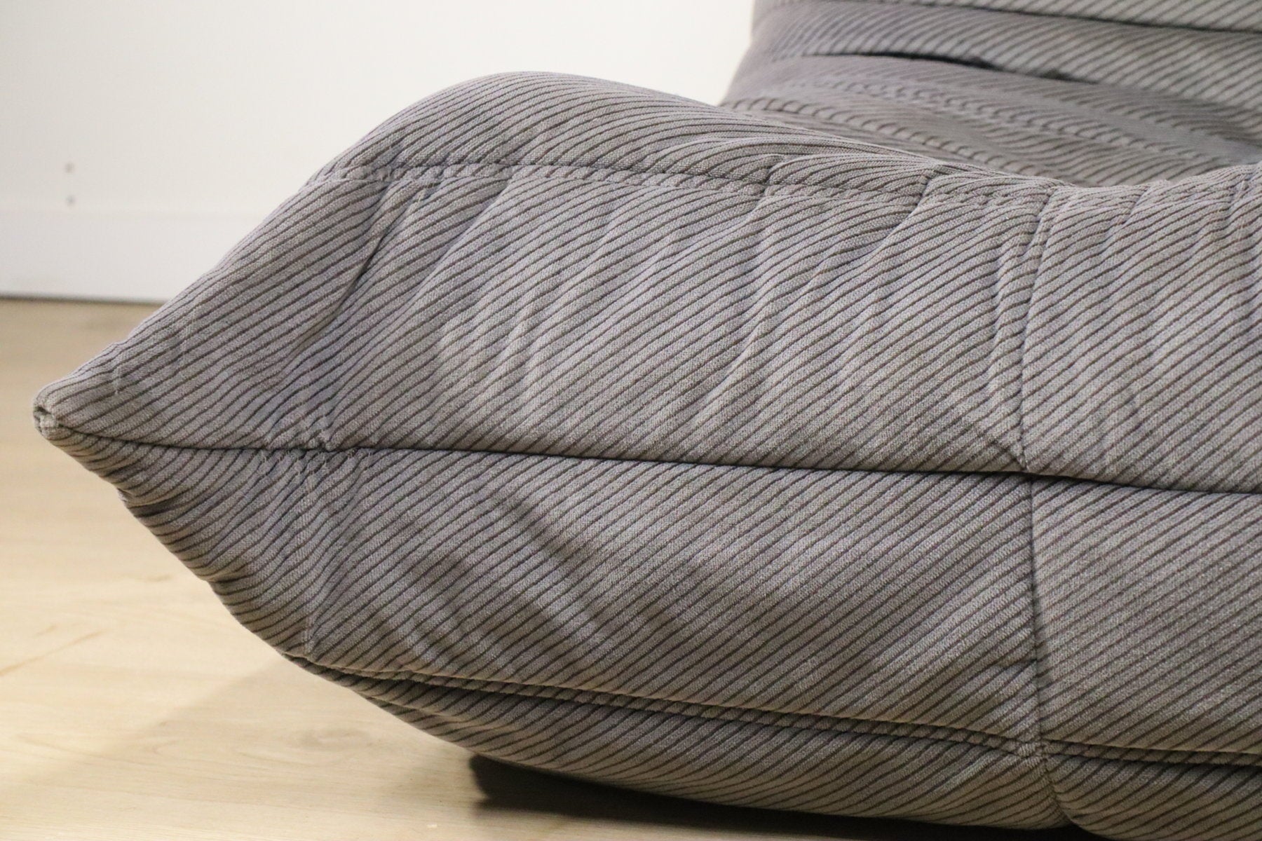 Véritable pièce emblématique du design français, le modèle Togo est reconnu pour sa silhouette basse, son confort enveloppant et son esthétique immédiatement identifiable. Sa structure entièrement en mousse plissée lui confère cette forme organique caractéristique qui épouse naturellement le corps.