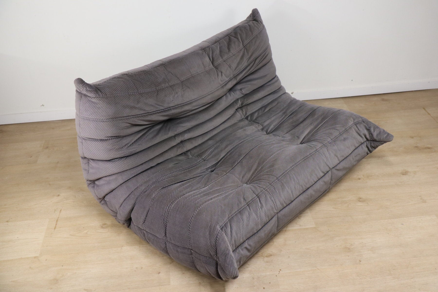 Cette version 2 places est habillée d’un velours côtelé gris, apportant chaleur et texture tout en s’intégrant facilement dans des intérieurs contemporains, vintage ou minimalistes.