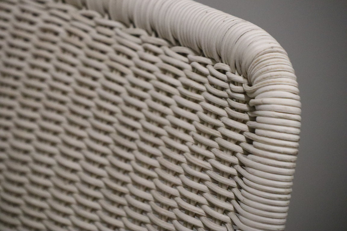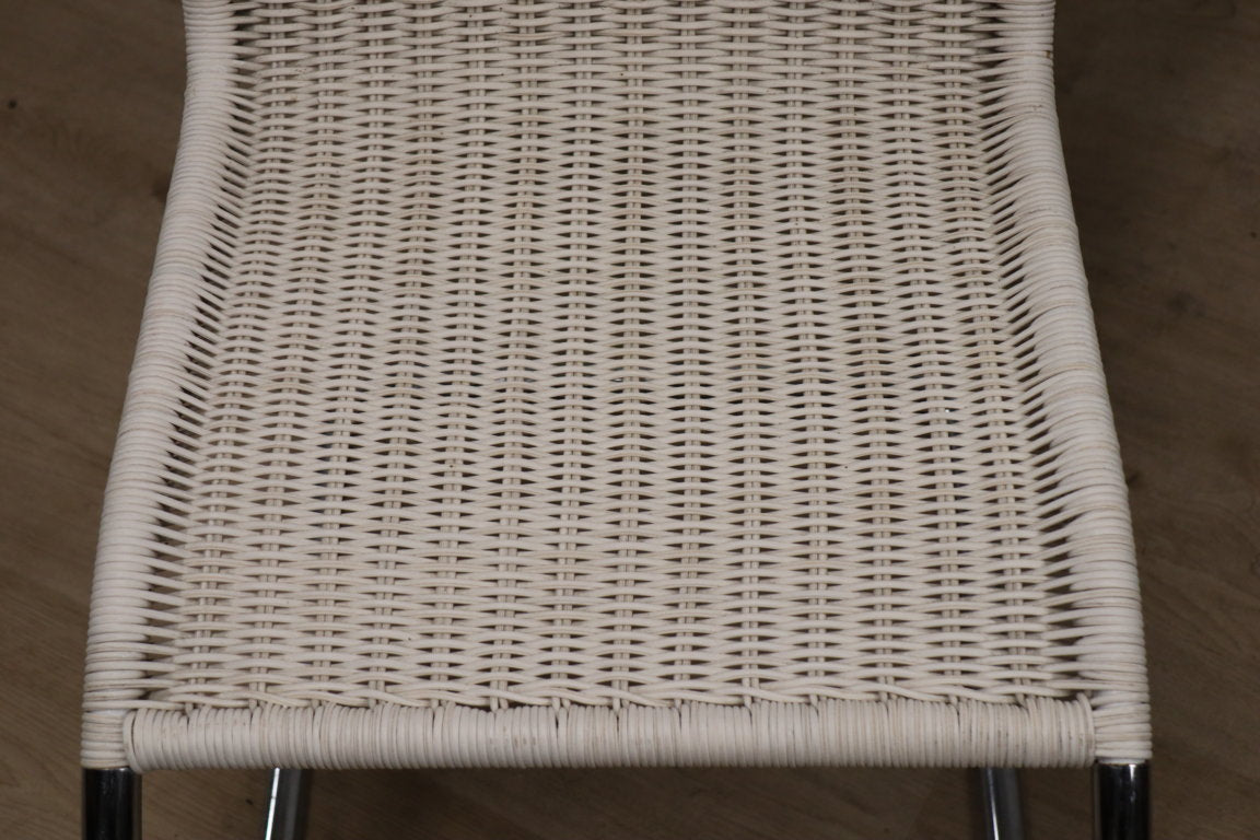 Assise et dossier en vannerie tressée, structure tubulaire en acier chromé.