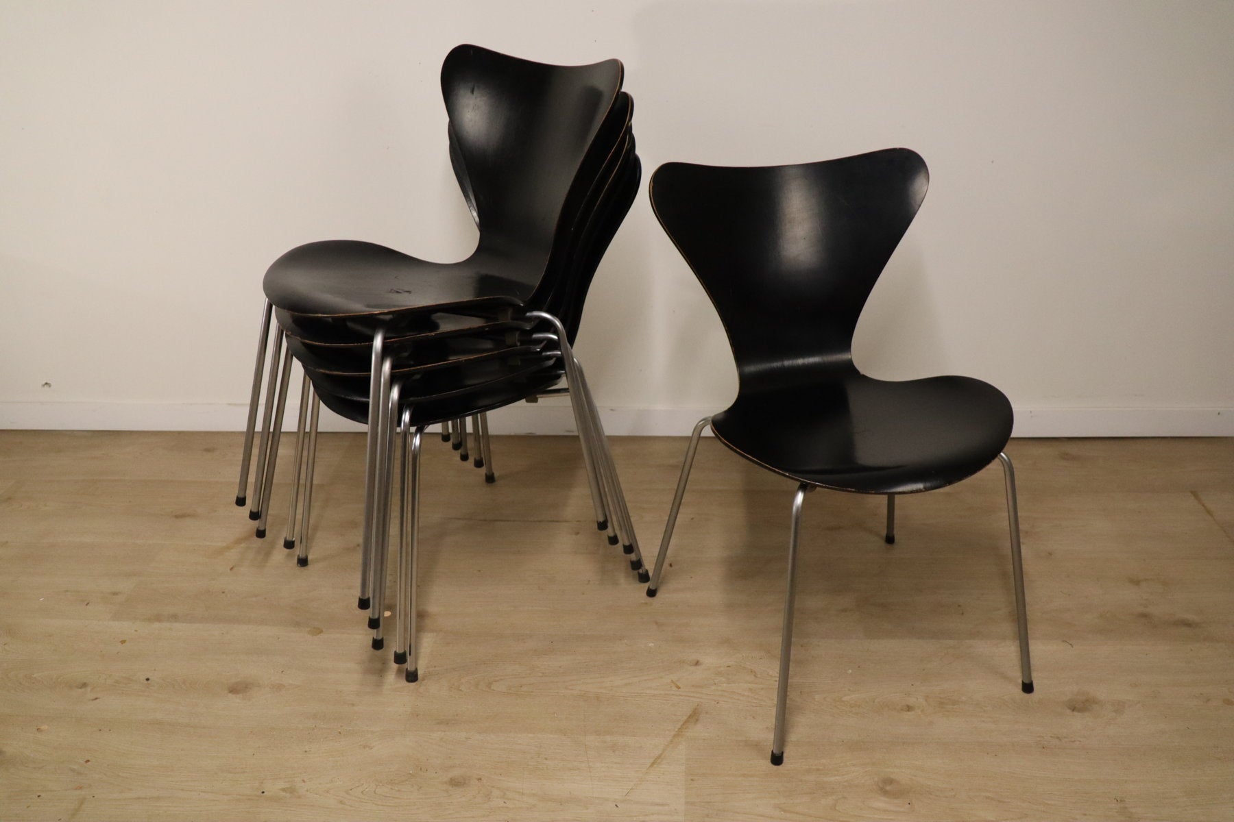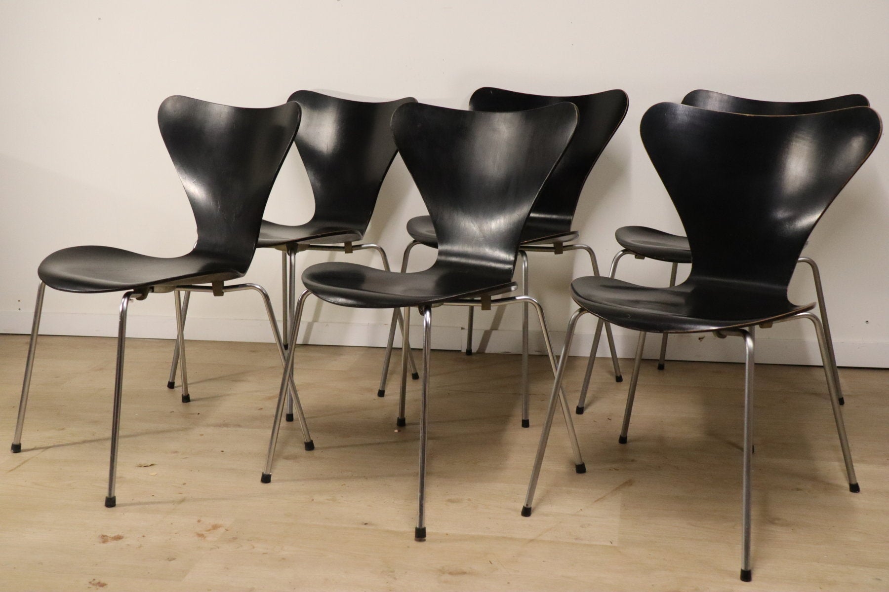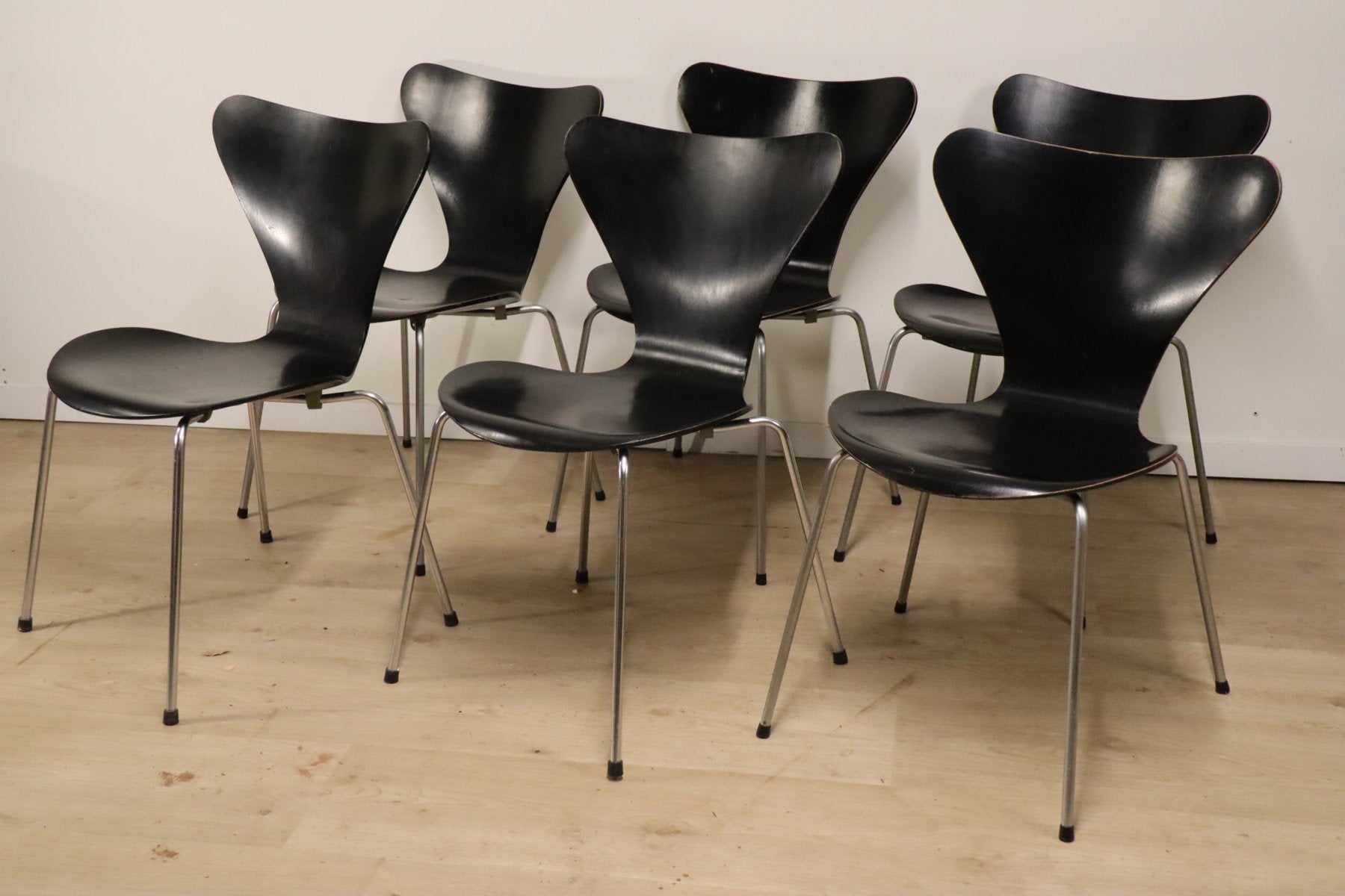 Rare et très belle ensemble de 6 chaises Série 7 éditées par Fritz Hansen, datées de 1965.