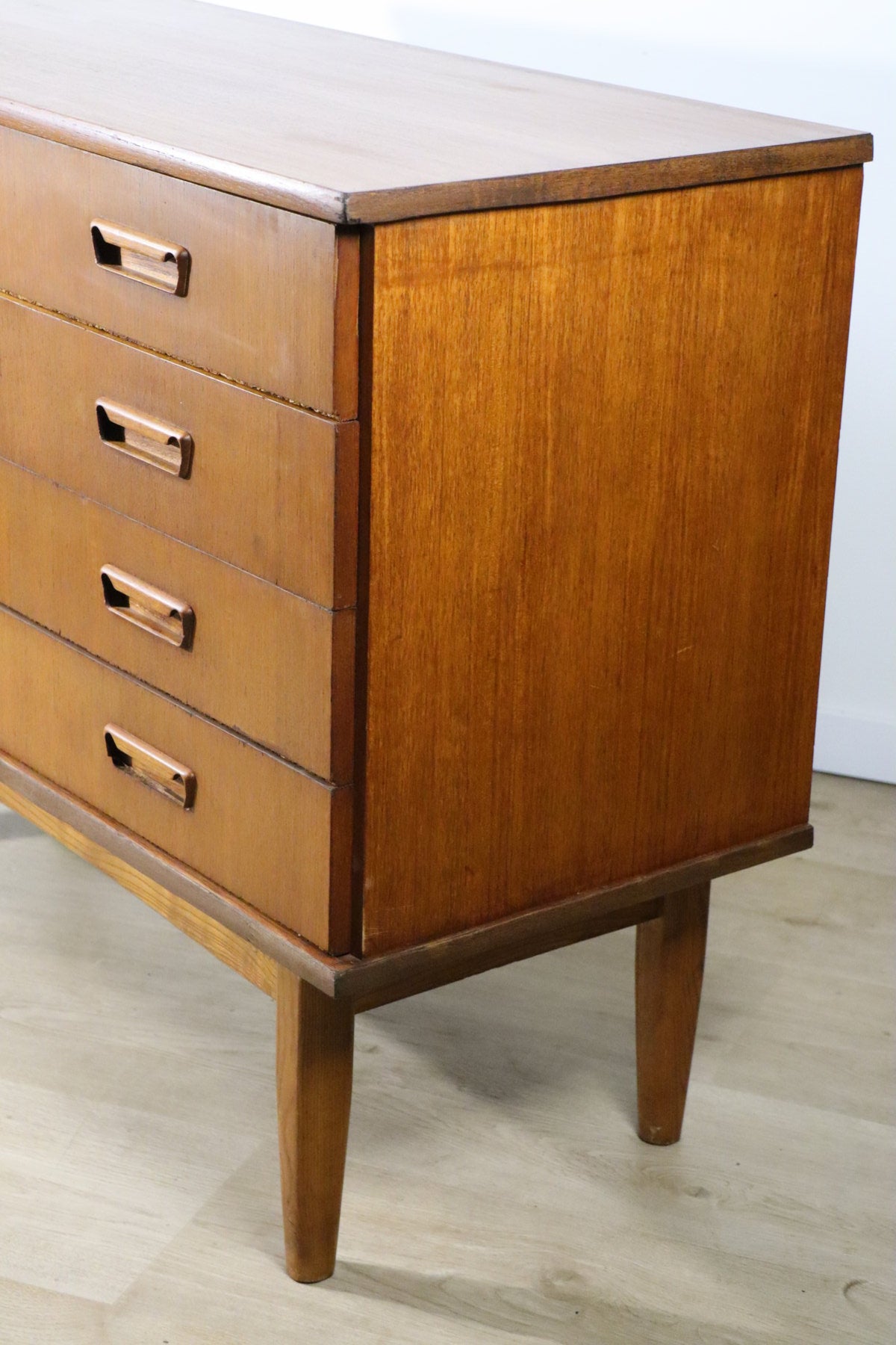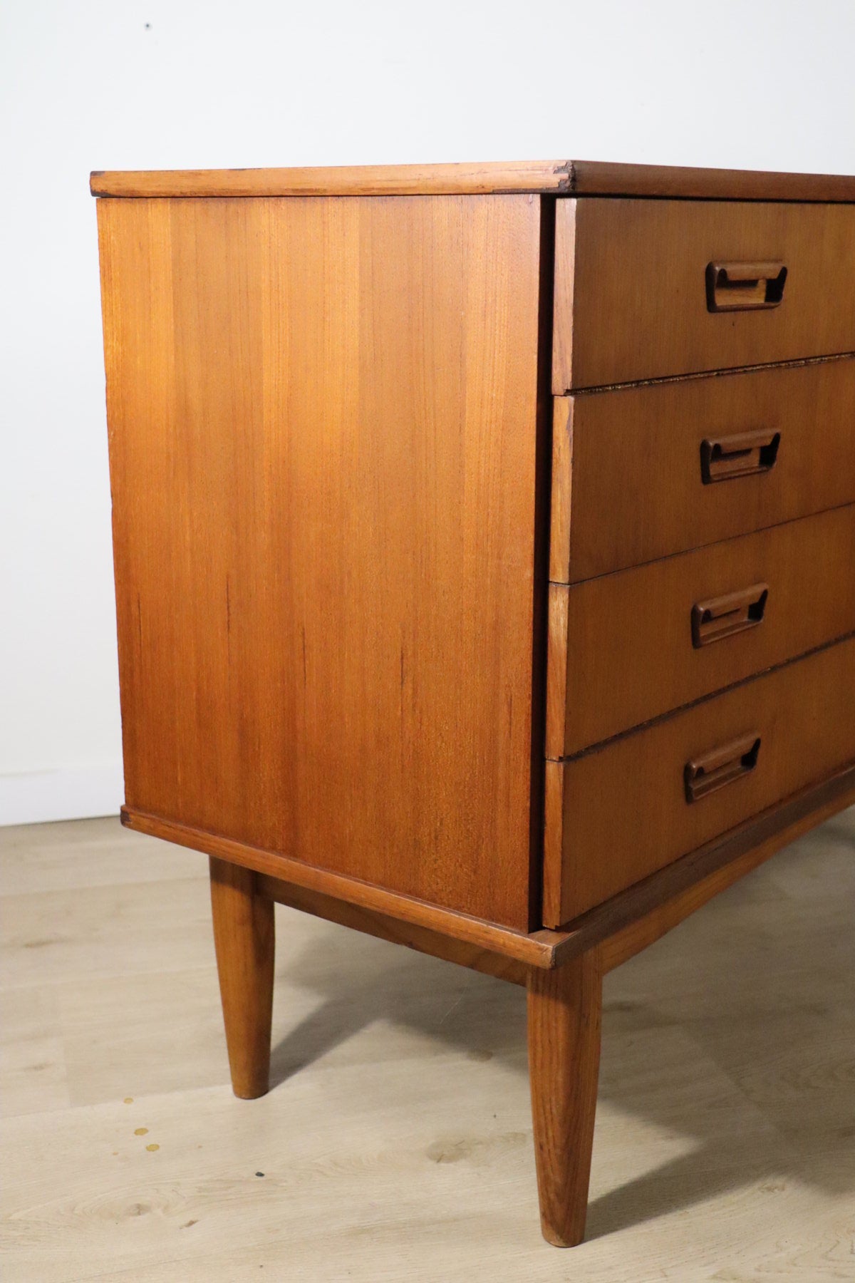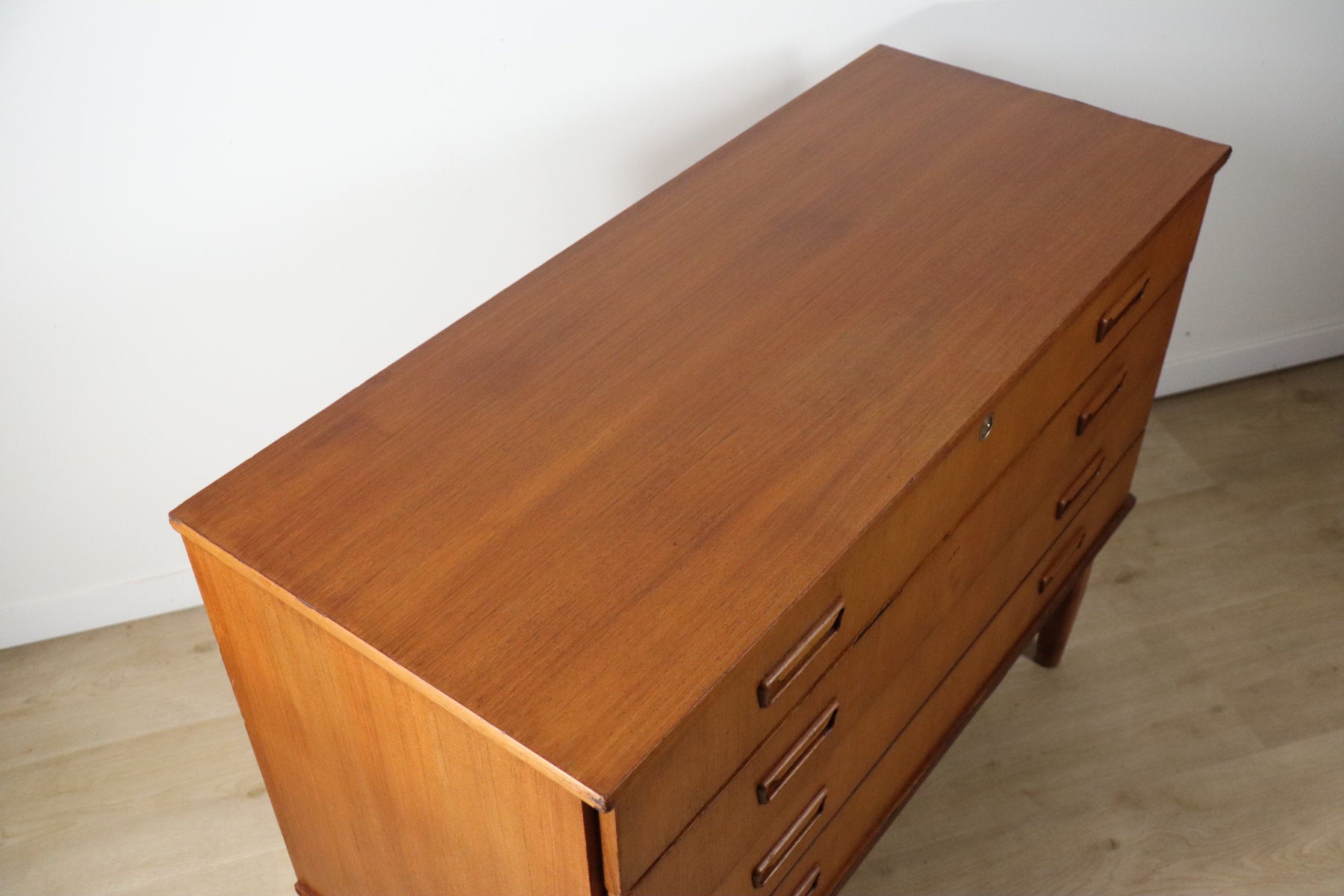 Commode scandinave en teck conçue dans les années 60. Une ligne légère et épurée avec ses poignées creusées.