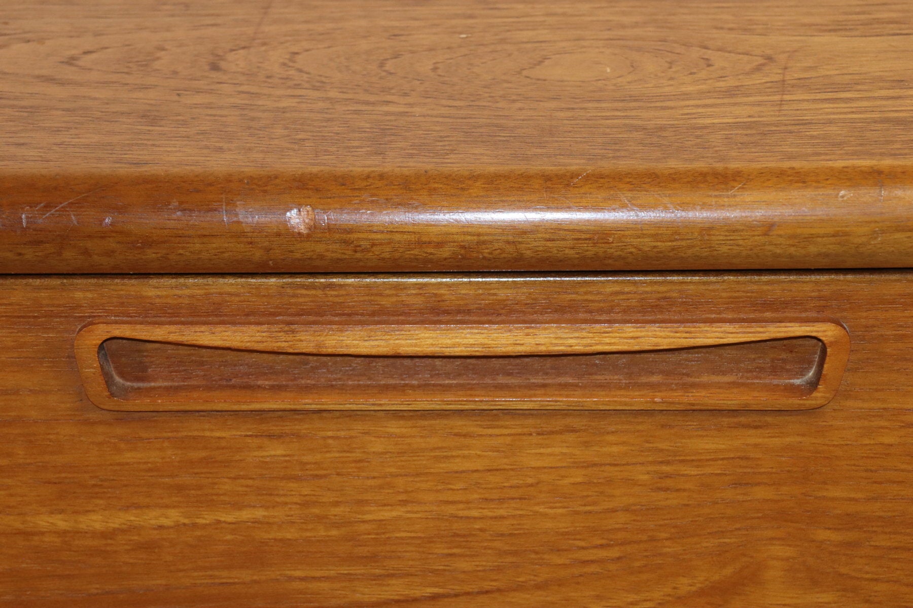 Lignes épurées, poignées intégrées sculptées et superbe patine chaleureuse du teck.