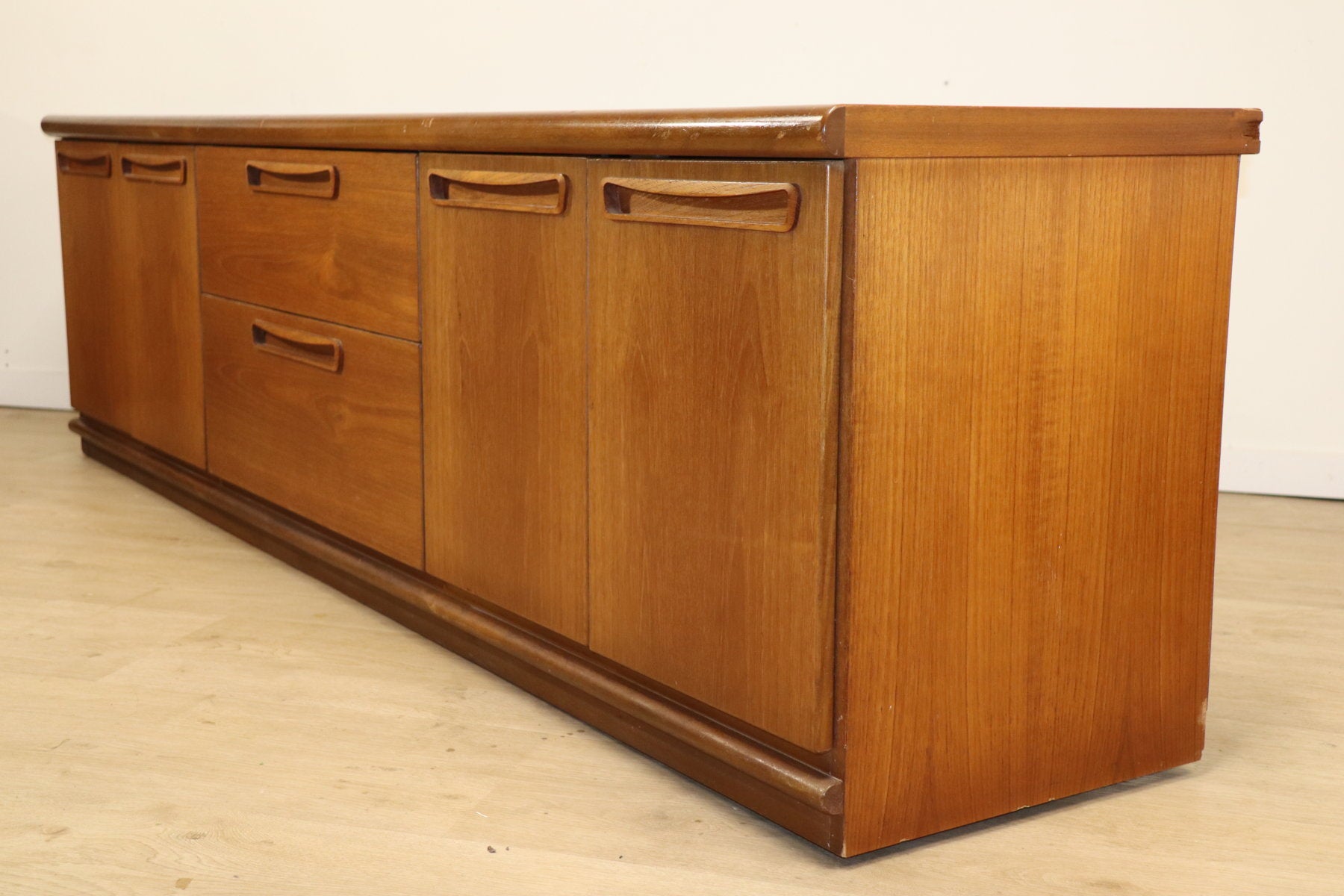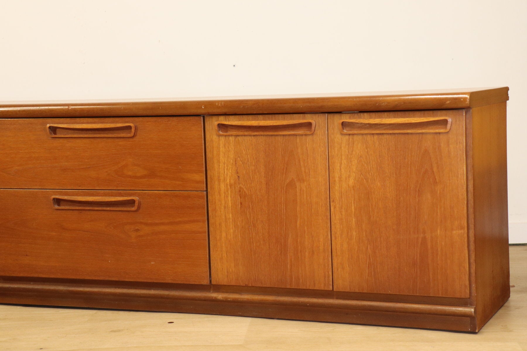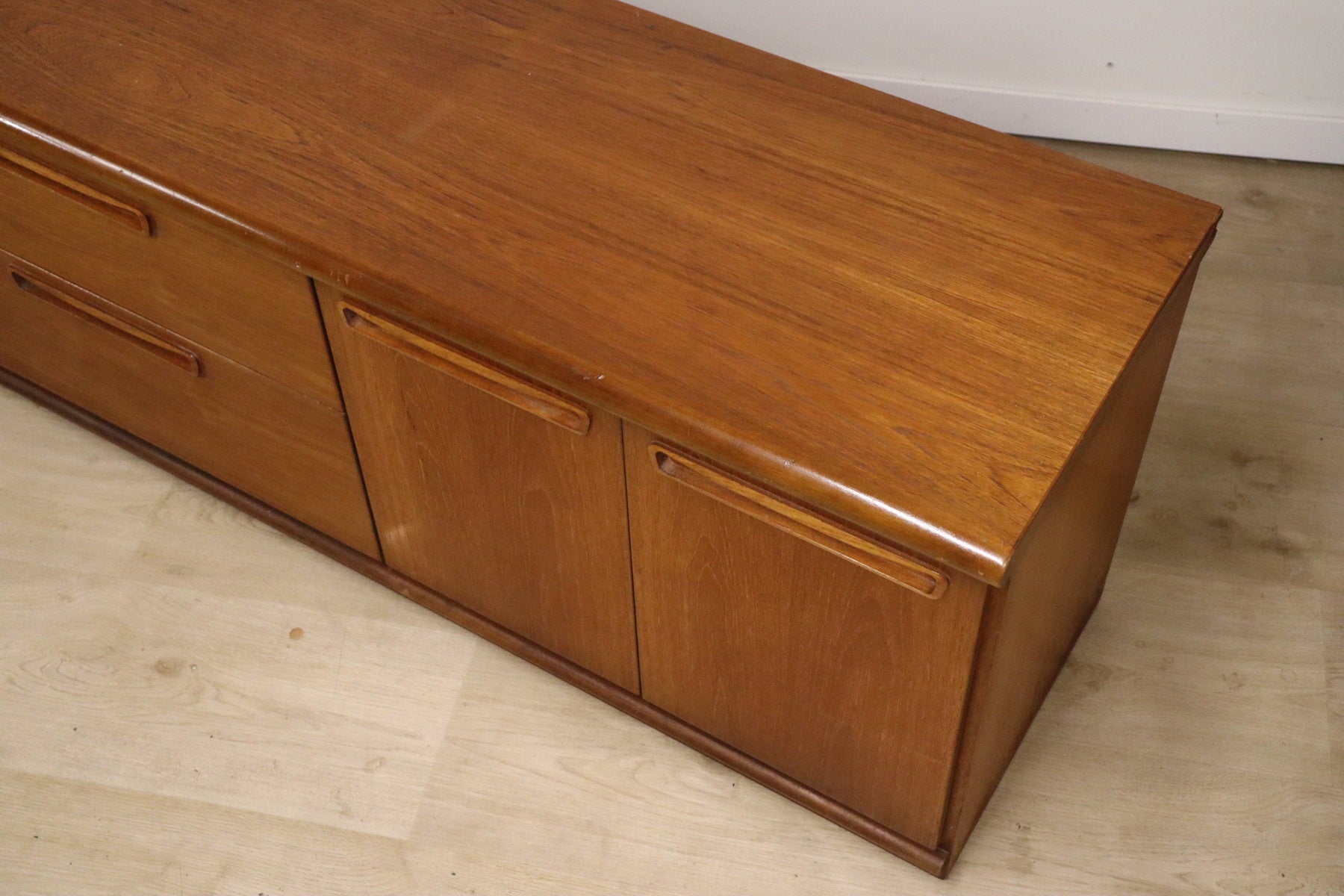 Belle enfilade basse en teck édition Meredew, emblématique du design mid-century britannique des années 1960.