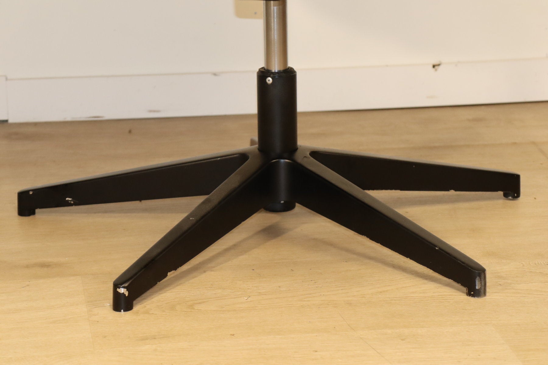 Le piètement en métal noir à cinq branches assure stabilité et robustesse, idéal pour un usage quotidien.