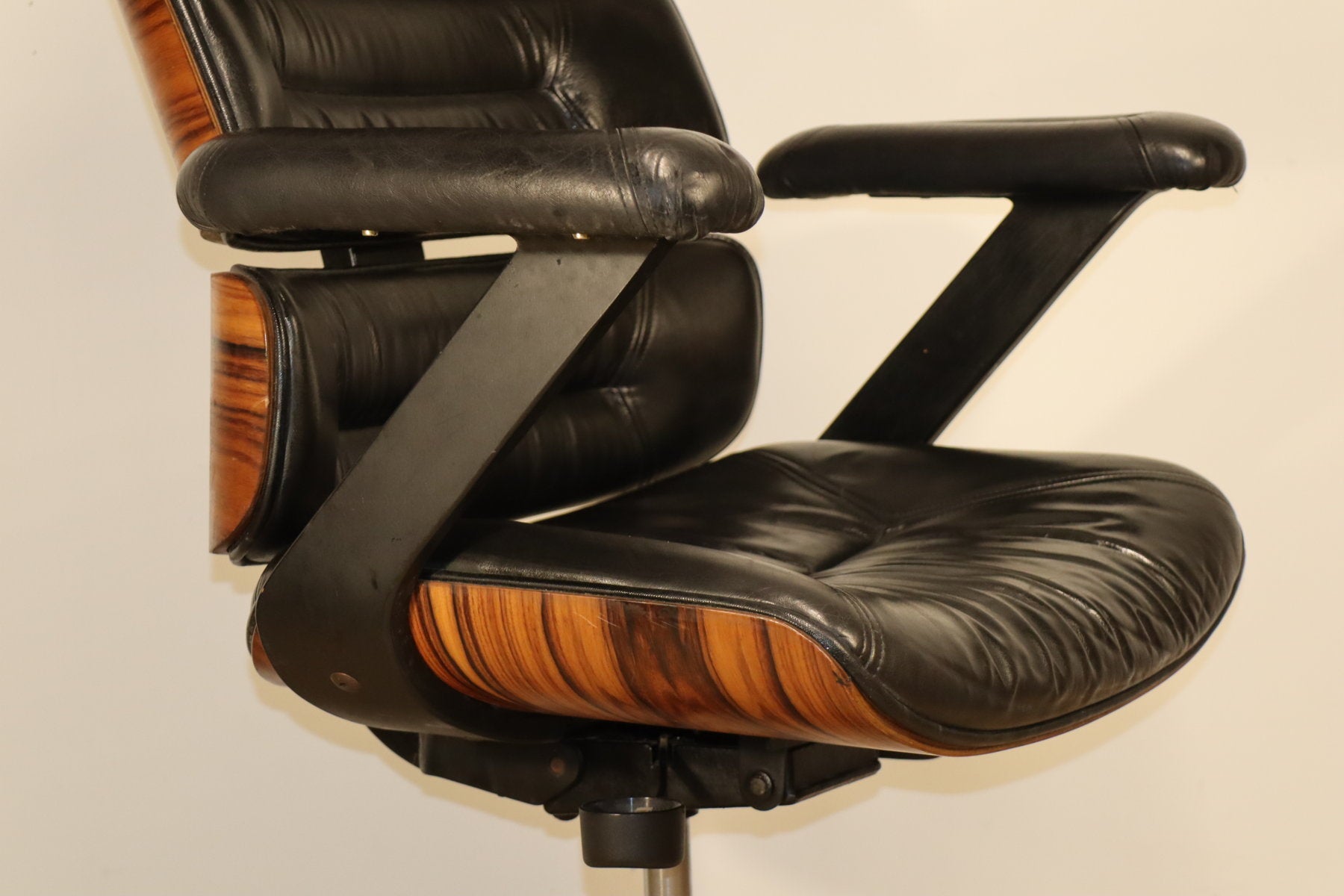 Fauteuil de bureau vintage en skaï et bois - 1970