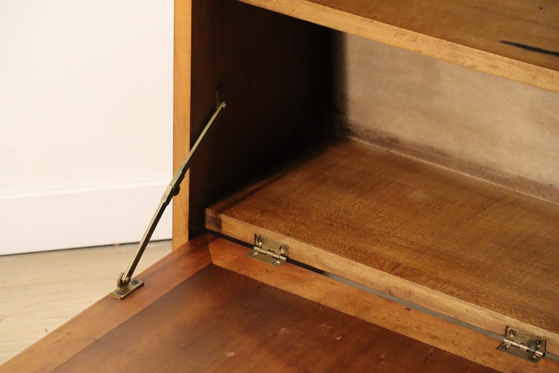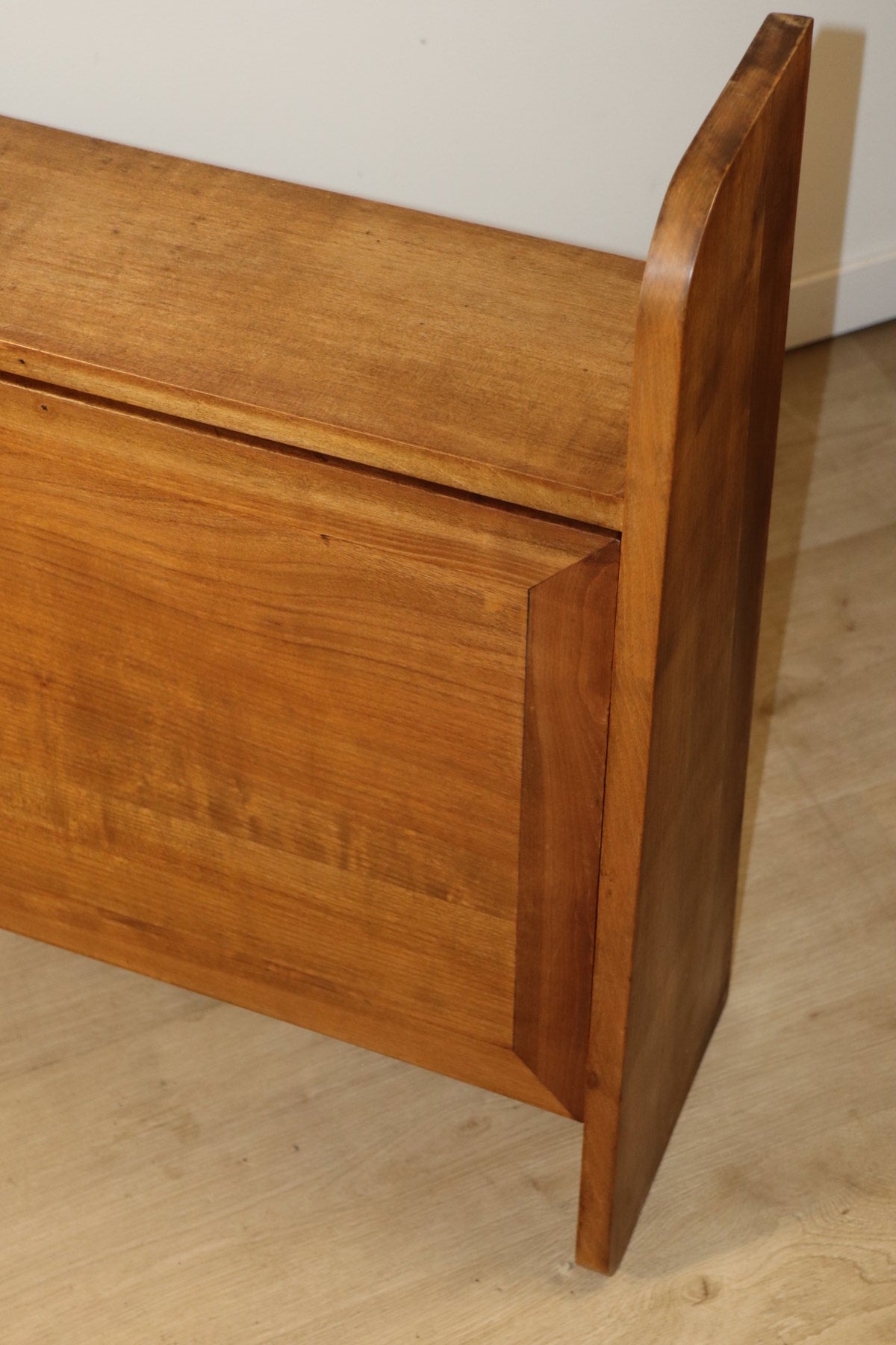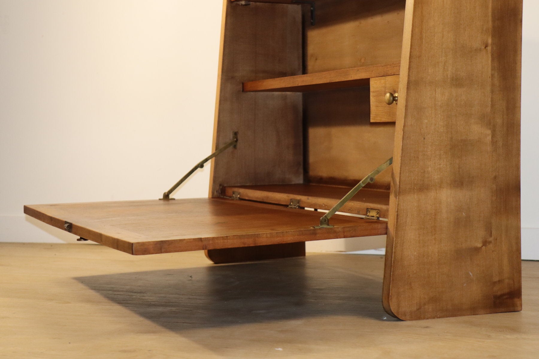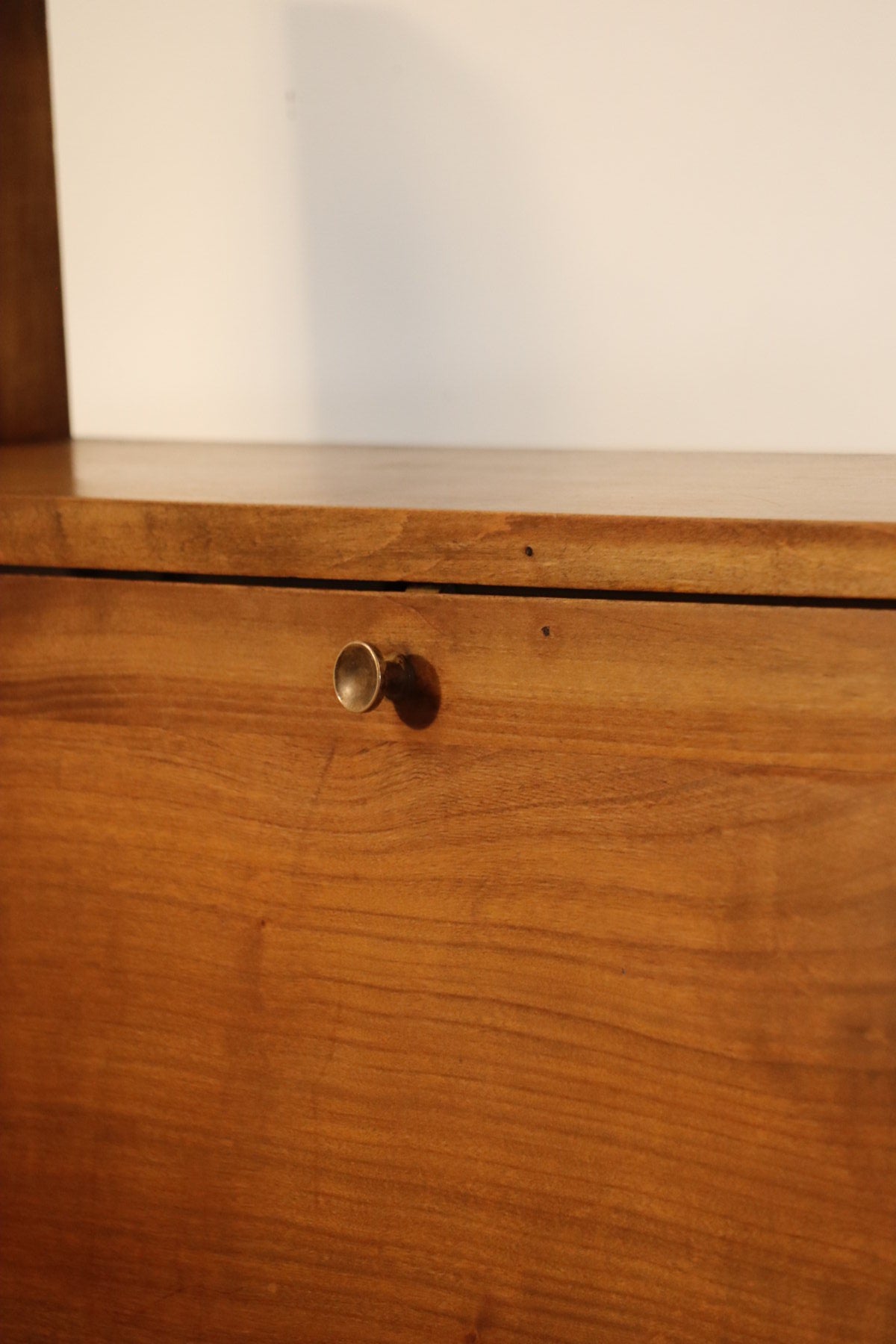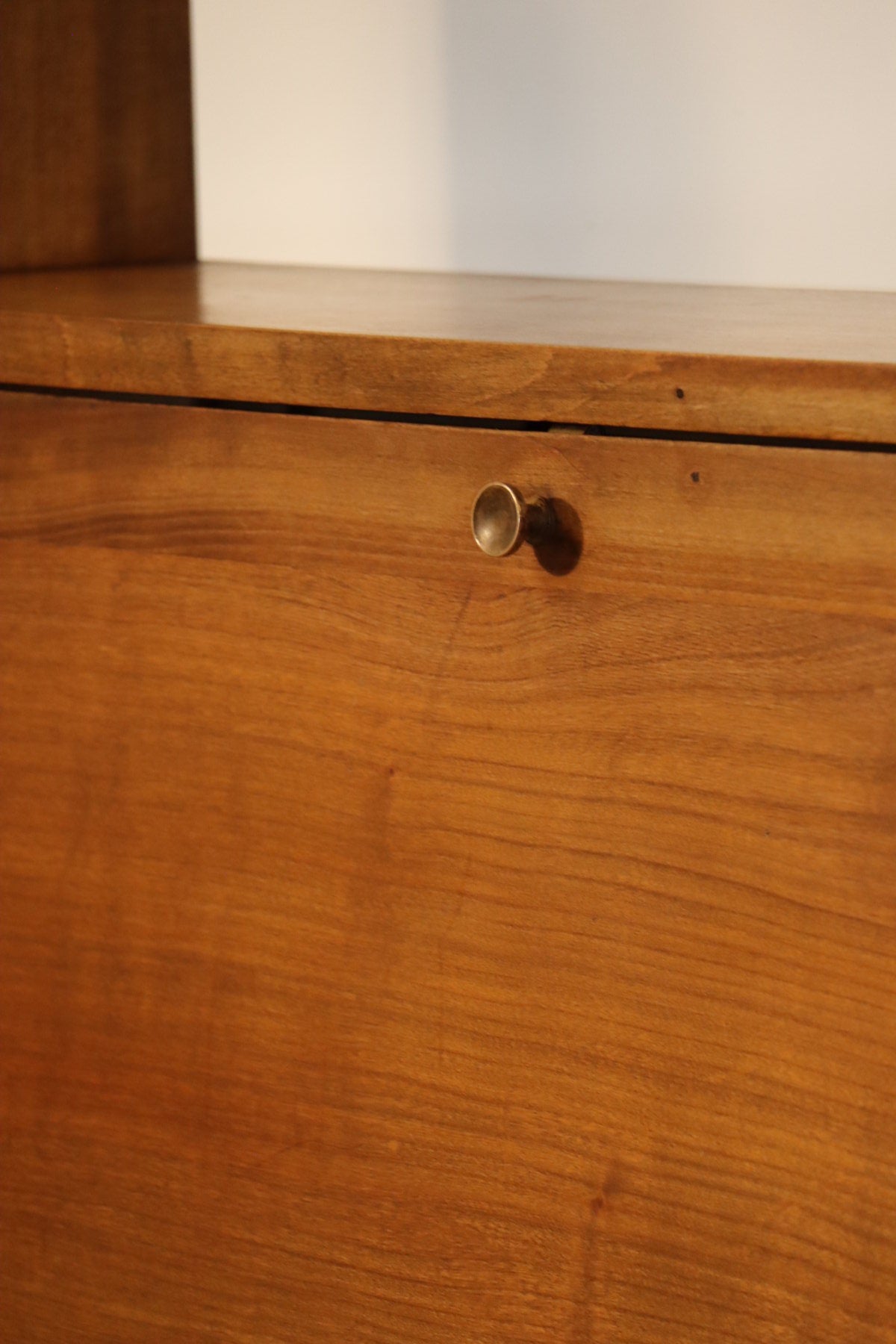 Secrétaire mural vintage en bois datant des années 50. Une ligne élégante et épurée avec sa porte à battant donnant un bel espace de rangement et de travail.