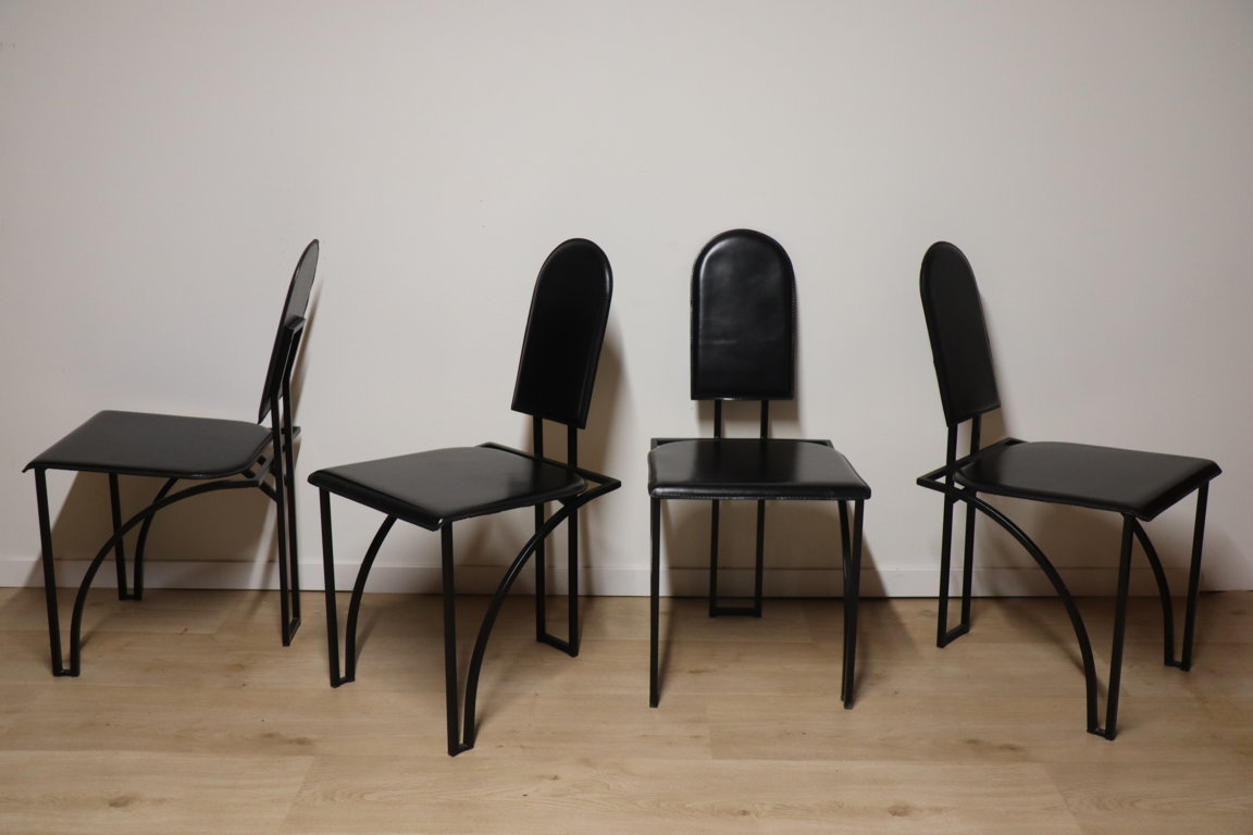 Série de 4 chaises de salle à manger dans un style moderniste très élégant.