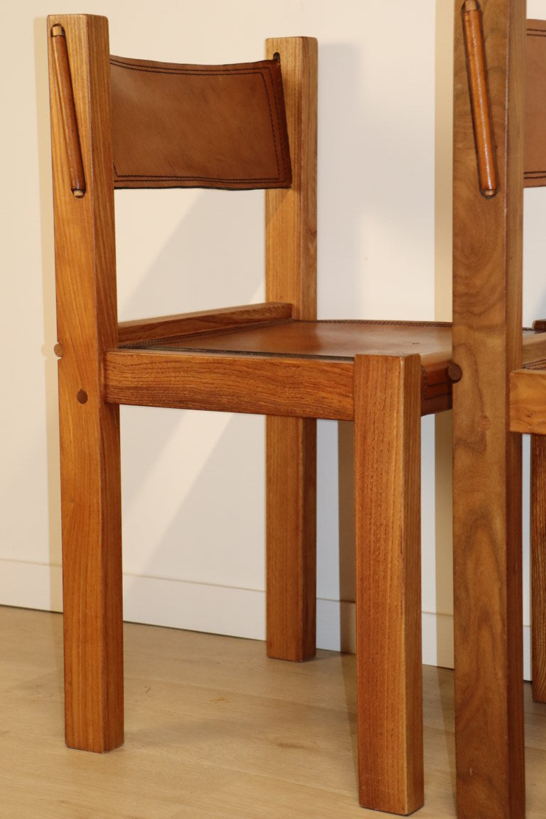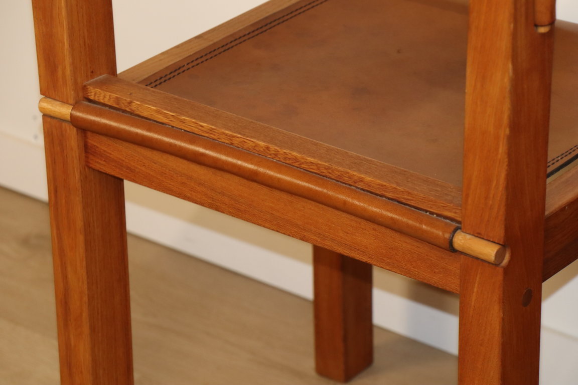 L’assise et le dossier sont en cuir tendu avec surpiqure.