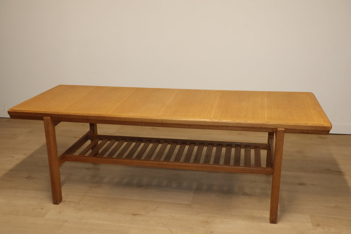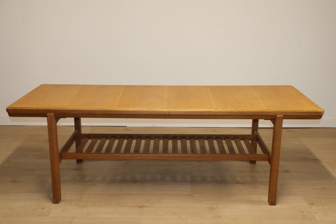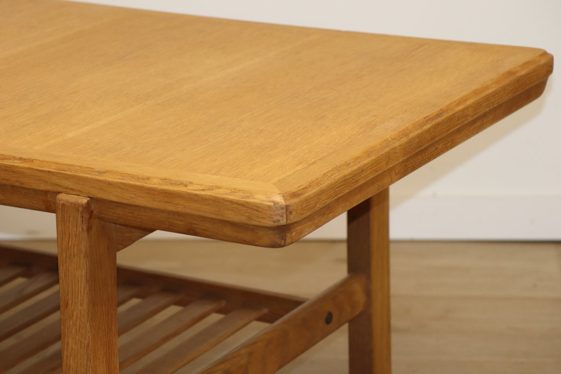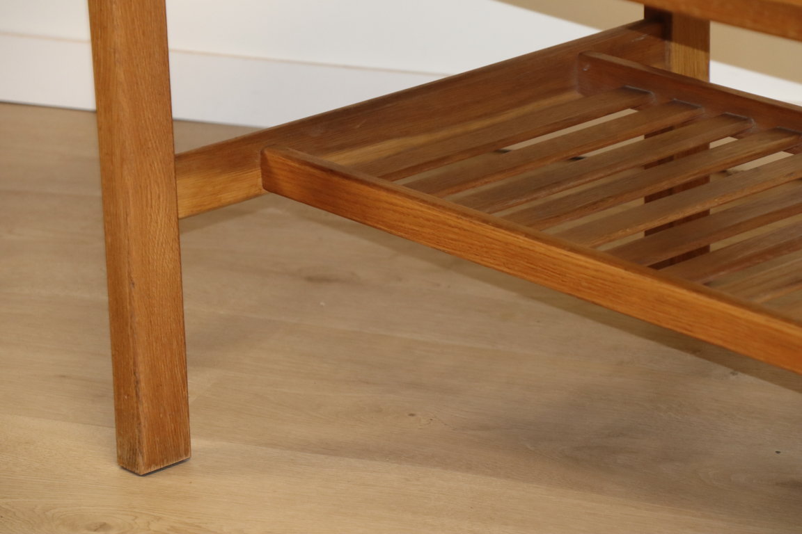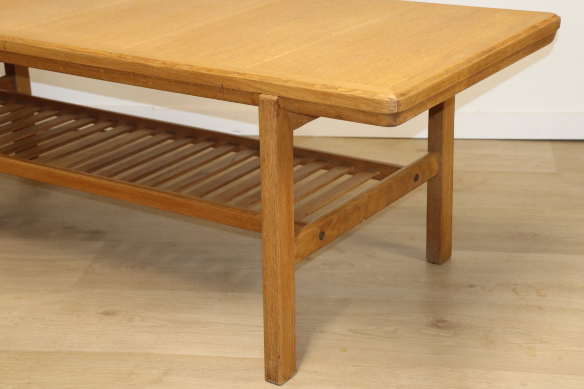 Table basse vintage rectangulaire en chêne massif datant des années 60.