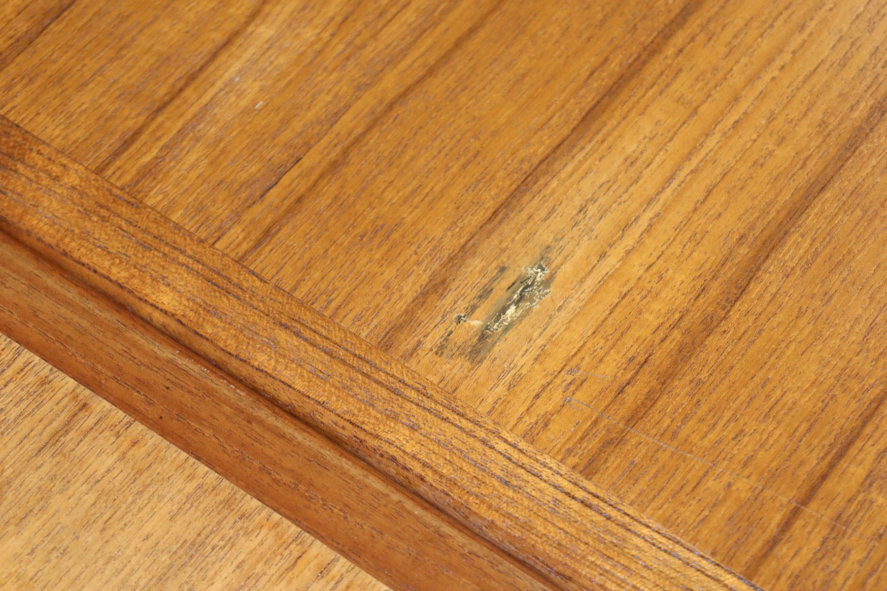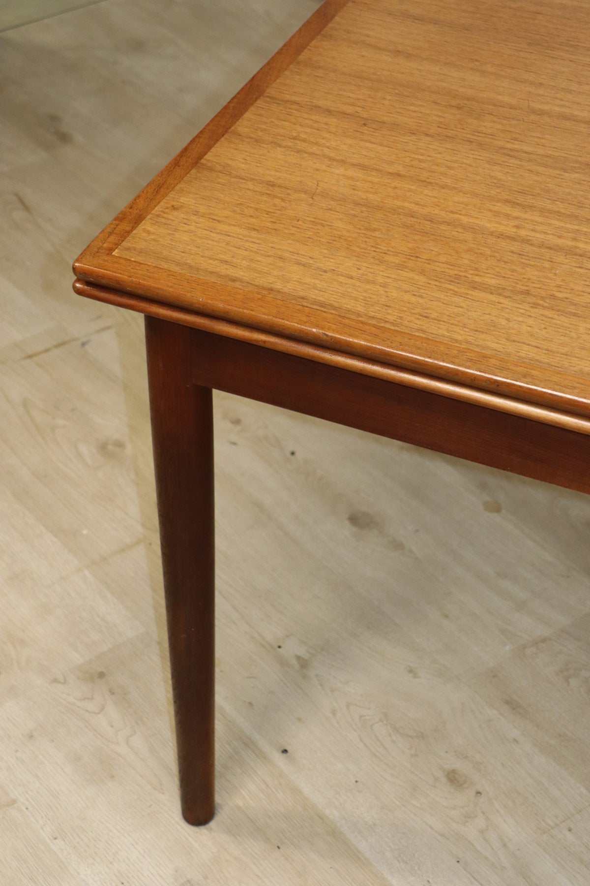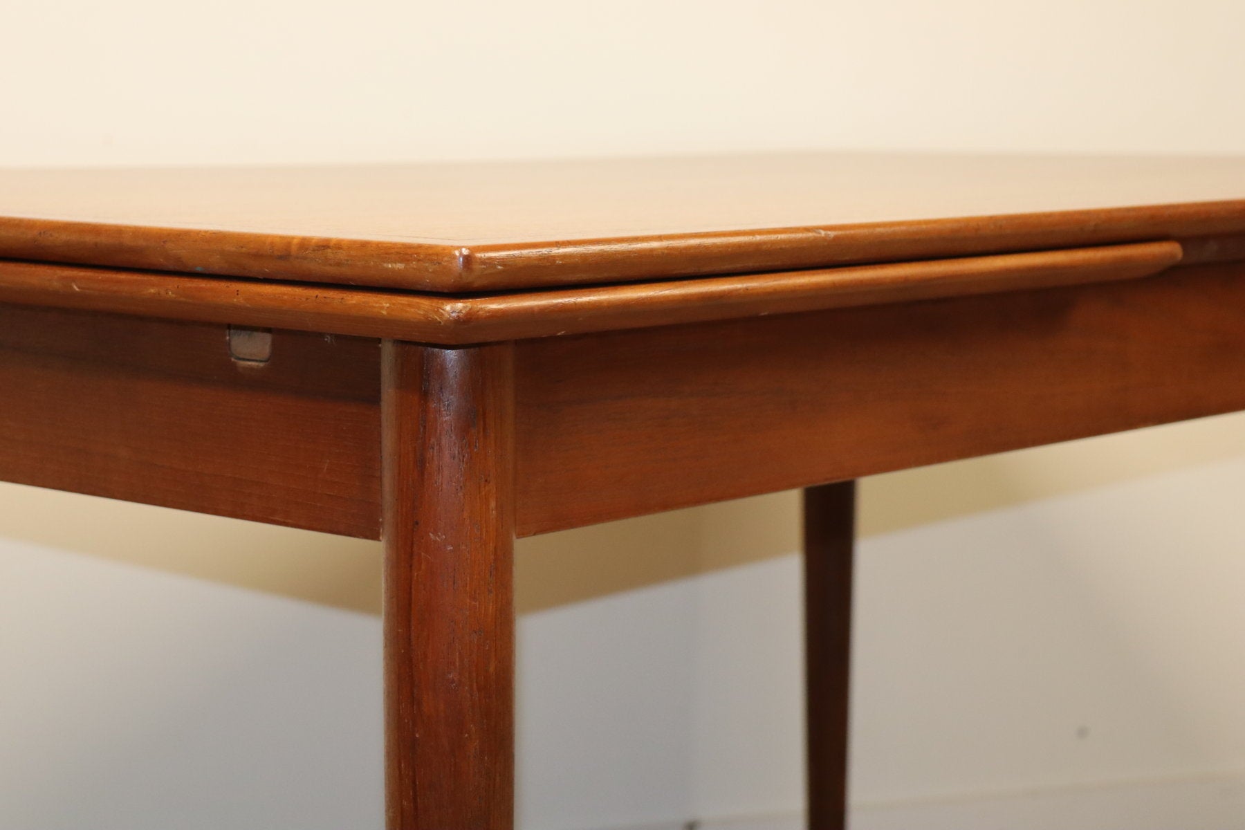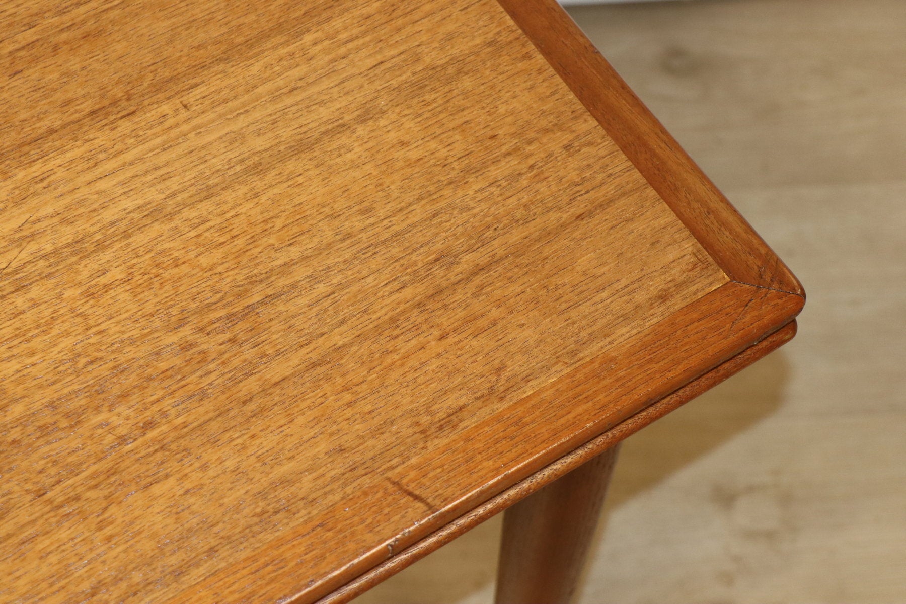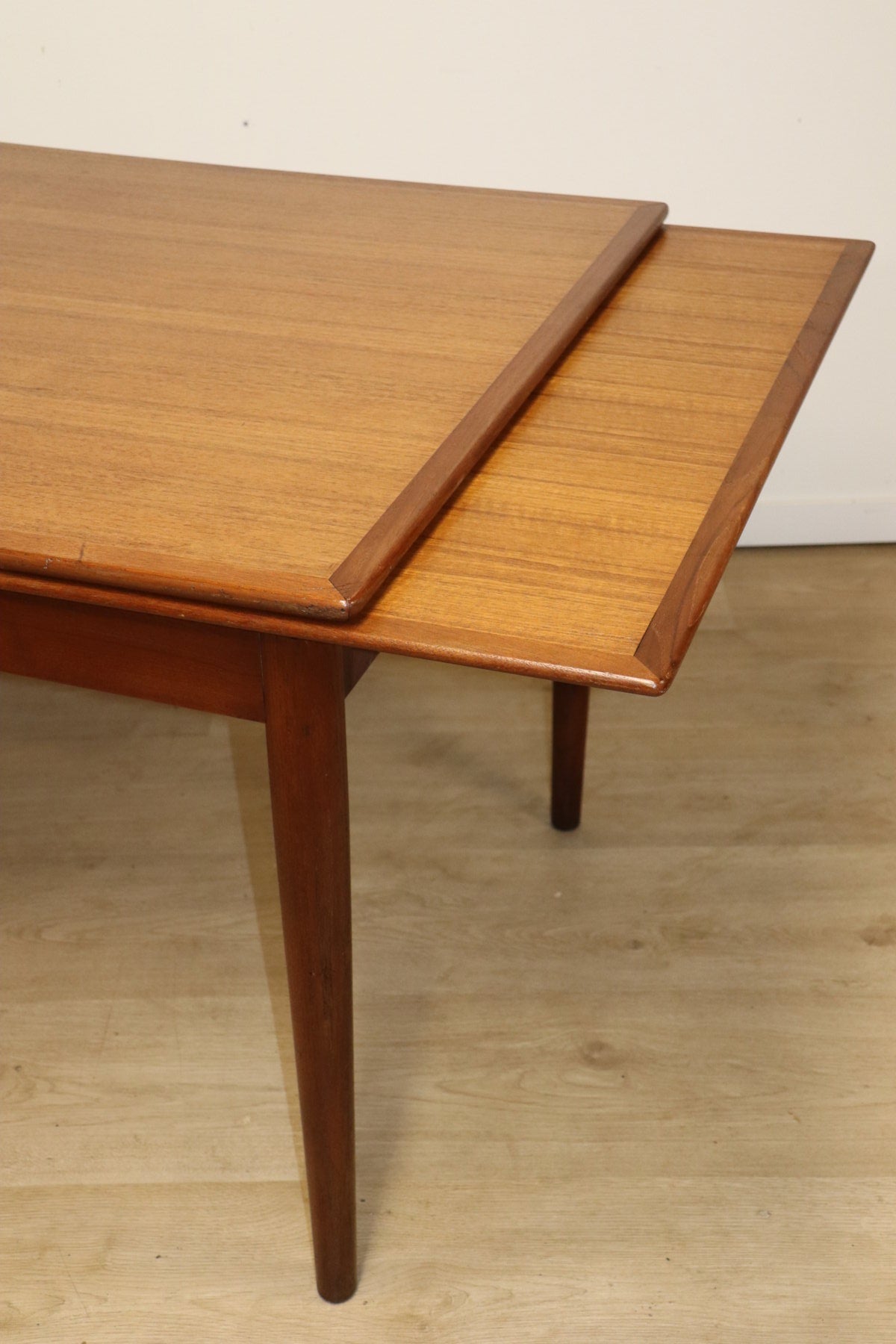 Table de repas extensible en teck au design scandinave épuré et raffiné. Une production danoise des années 60 avec son estampille.