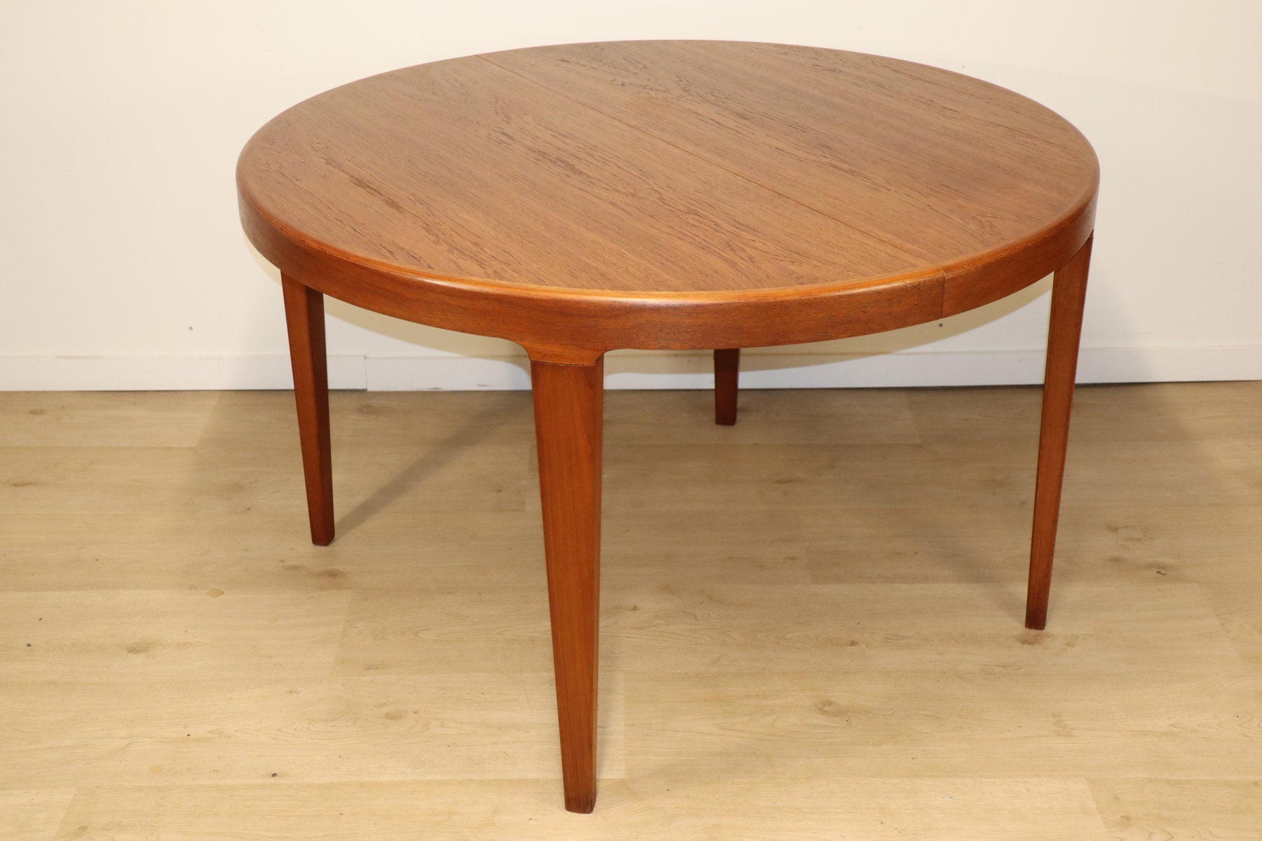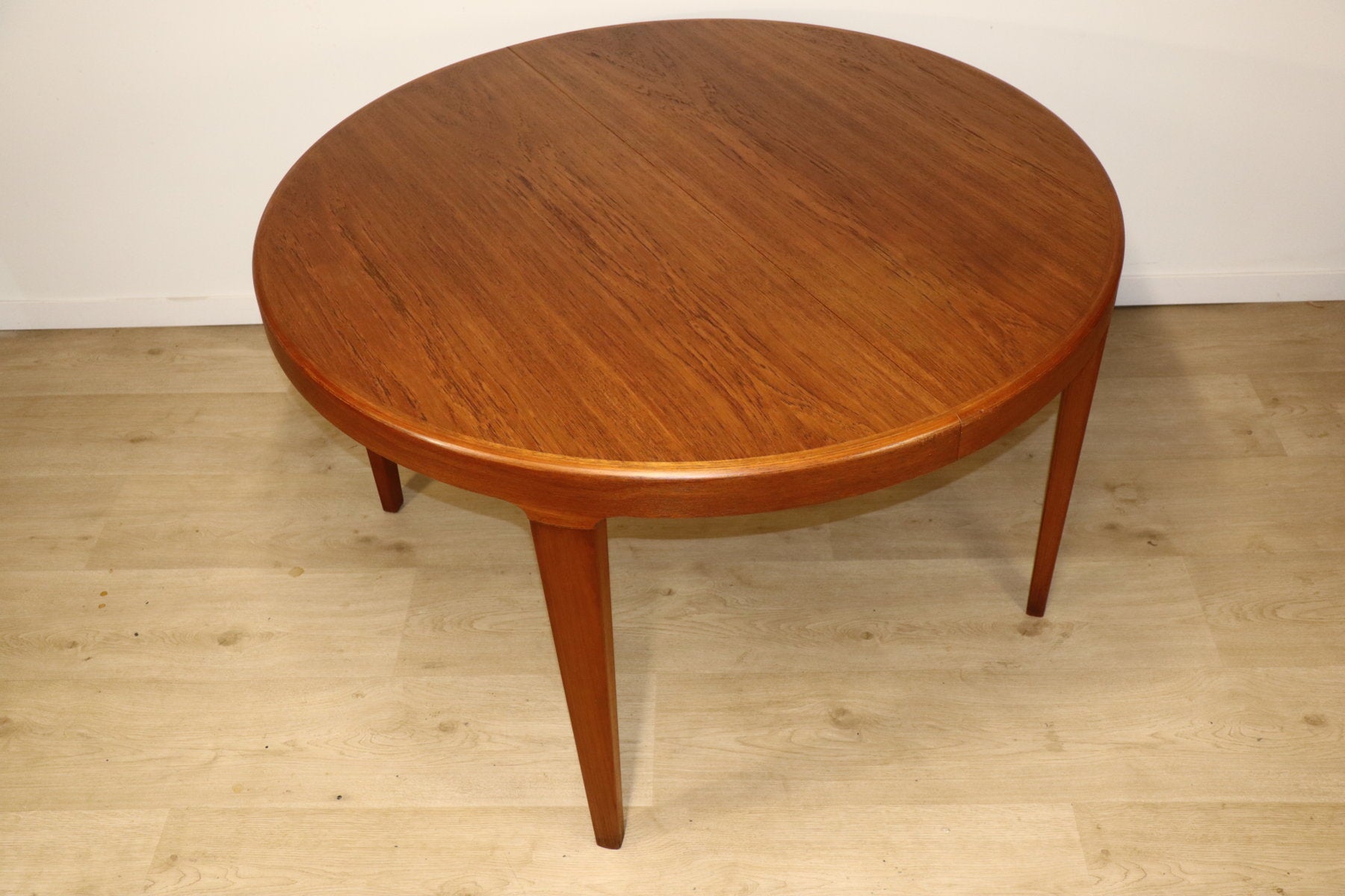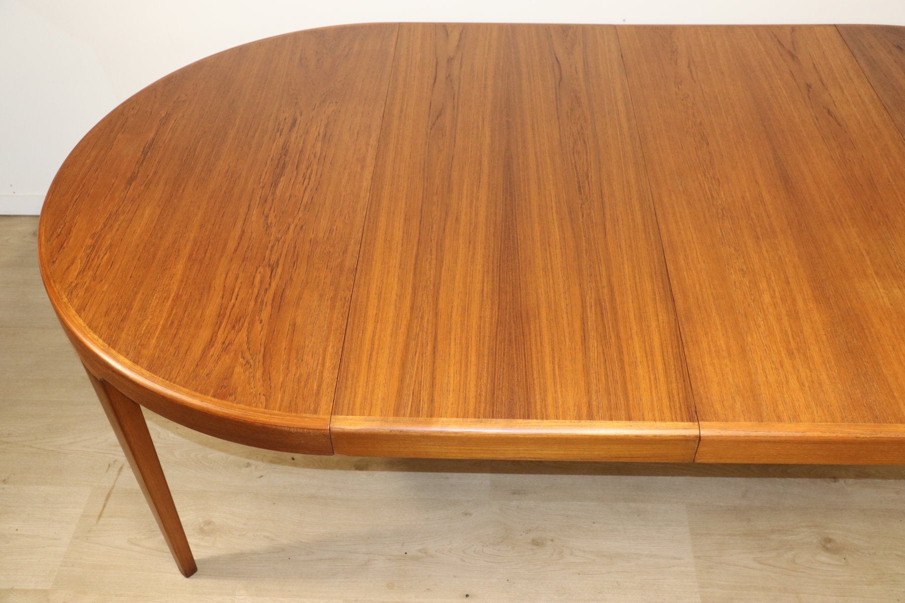 Sa forme ronde favorise la convivialité au quotidien, tandis que son système d’allonge centrale permet d’accueillir facilement vos invités en un clin d’œil. Les pieds fuselés apportent légèreté et finesse à l’ensemble, dans la plus pure tradition du design nordique. Elle dispose de deux allonges indépendantes. En bon état de conservation comme le témoigne les différentes photos.