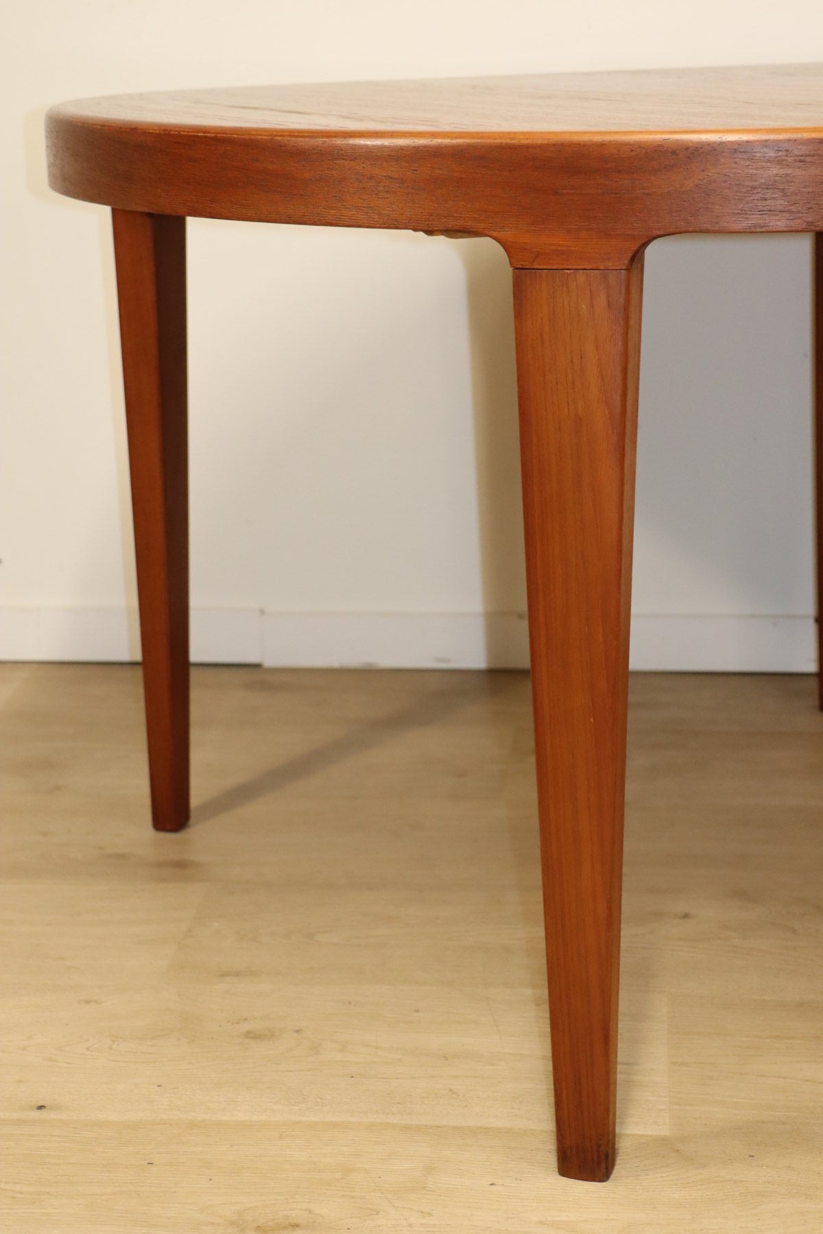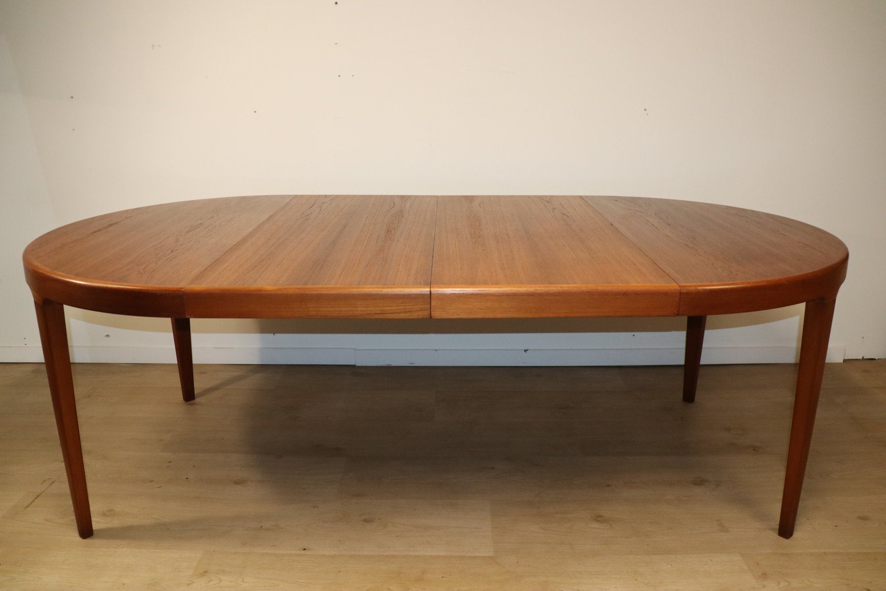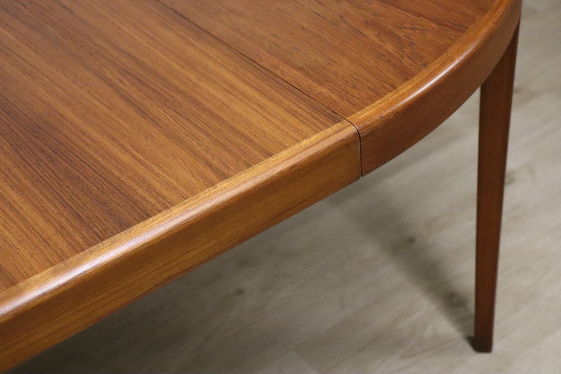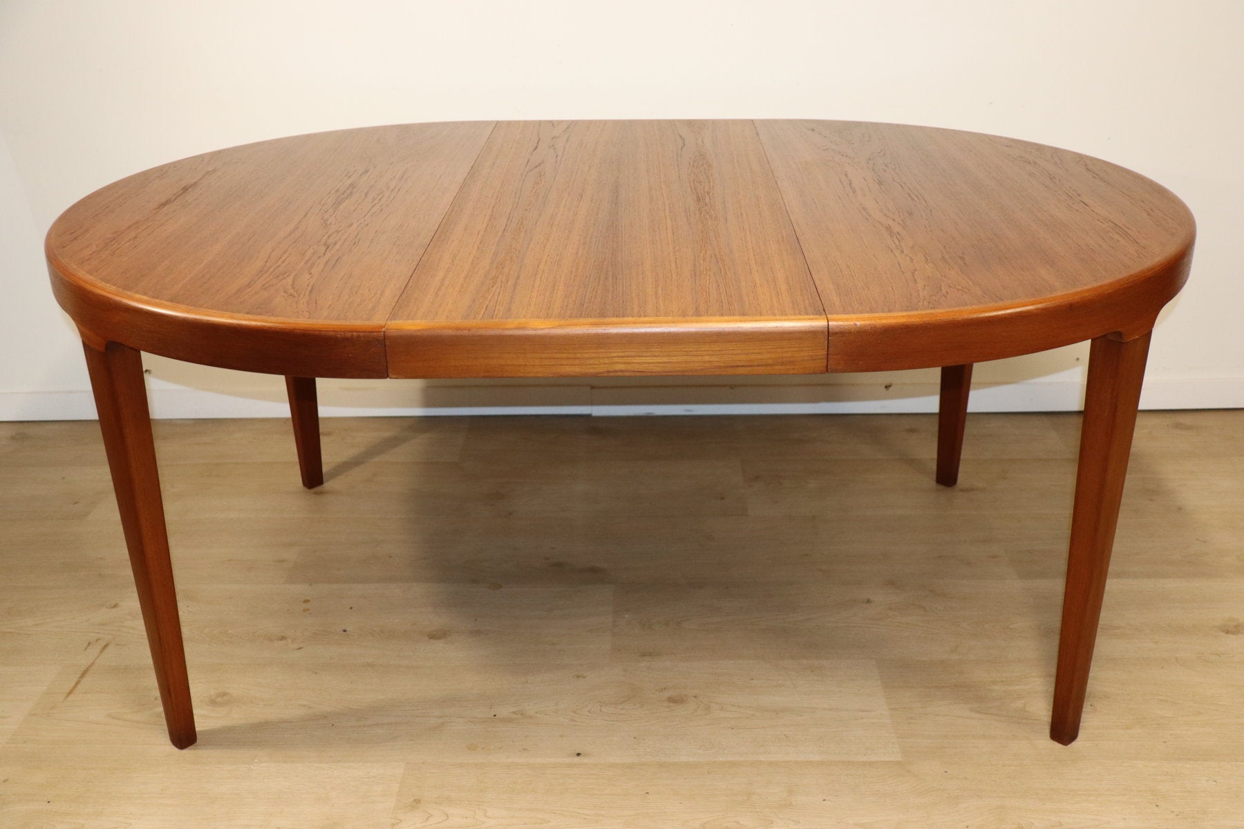 Sa forme ronde favorise la convivialité au quotidien, tandis que son système d’allonge centrale permet d’accueillir facilement vos invités en un clin d’œil. Les pieds fuselés apportent légèreté et finesse à l’ensemble, dans la plus pure tradition du design nordique. Elle dispose de deux allonges indépendantes. En bon état de conservation comme le témoigne les différentes photos.